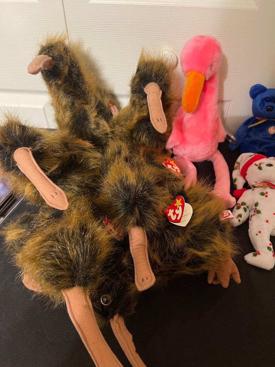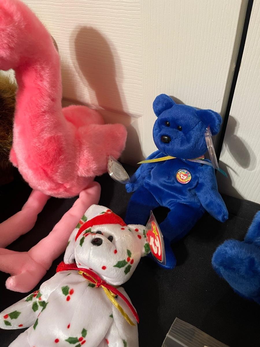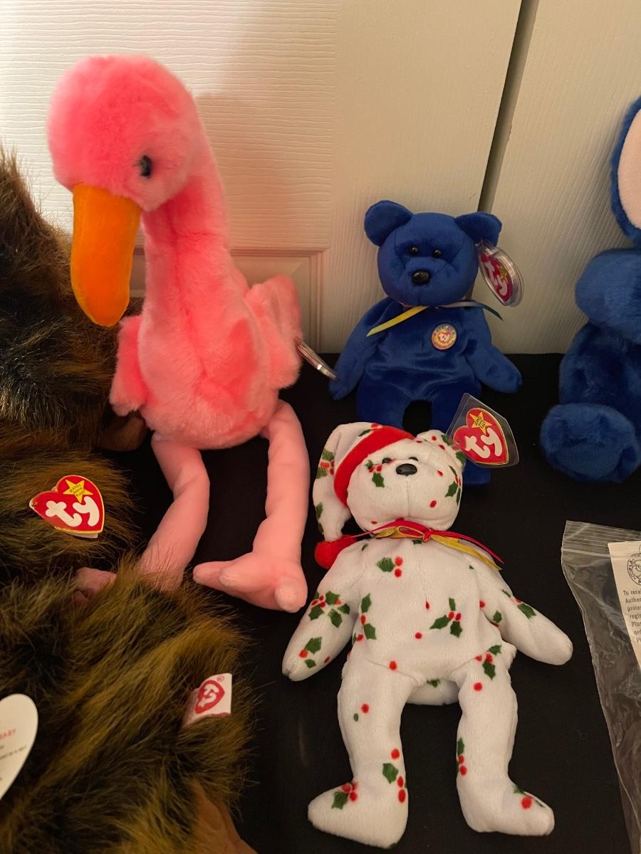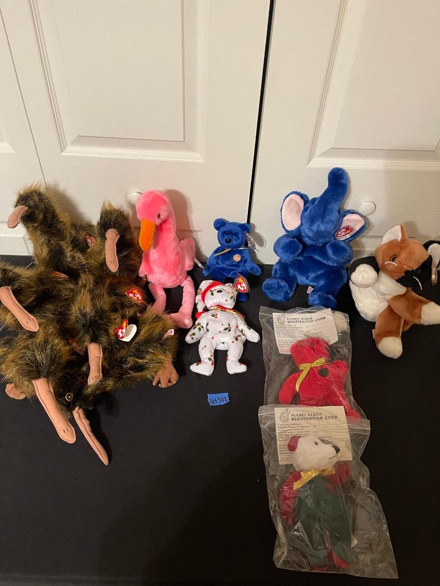 (6) "Beak" Beanie Buddys, (1) cat, (1) flamingo, (1) blue elephant, Ty Beanie Baby official club bear, Ty Christmas beanie baby,(2) planet plush bears.