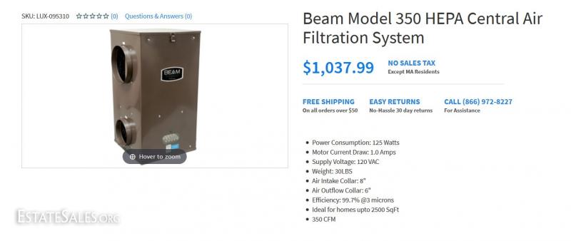 Beam Model 350 HEPA Central Air Filtration System. These are new in the box.