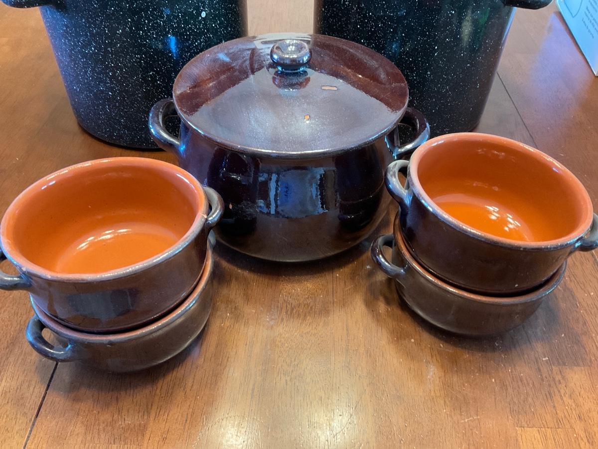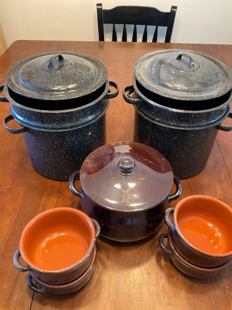 Bean pot w/bowls & double boilers