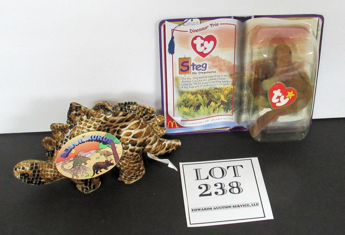 Beanasauras Dinosaur Bean Bag and TY Mini Dinosaur Steg