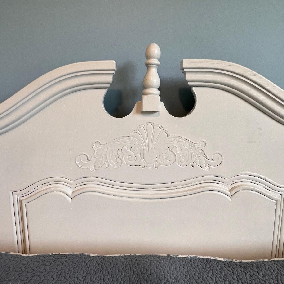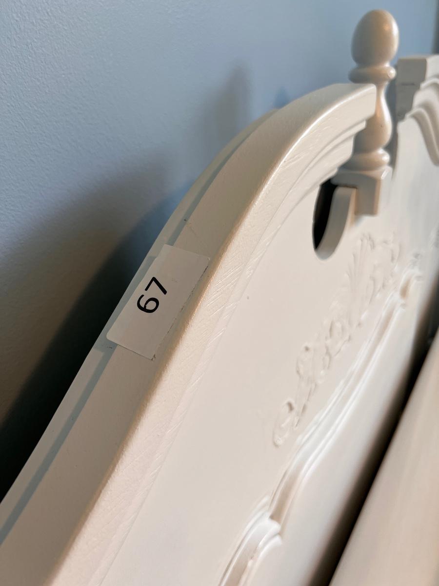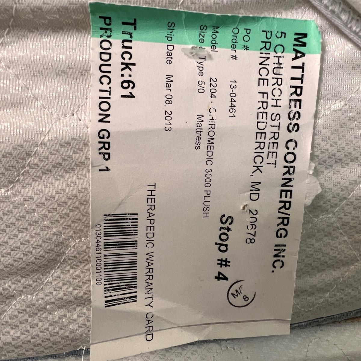 Painted white solid wood 4 poster bedframe with like new Queen Chiromedic 3000 Plush mattress and box Spring. Linens not included. In good used condition. Wood shows some scratches as shown in pics.