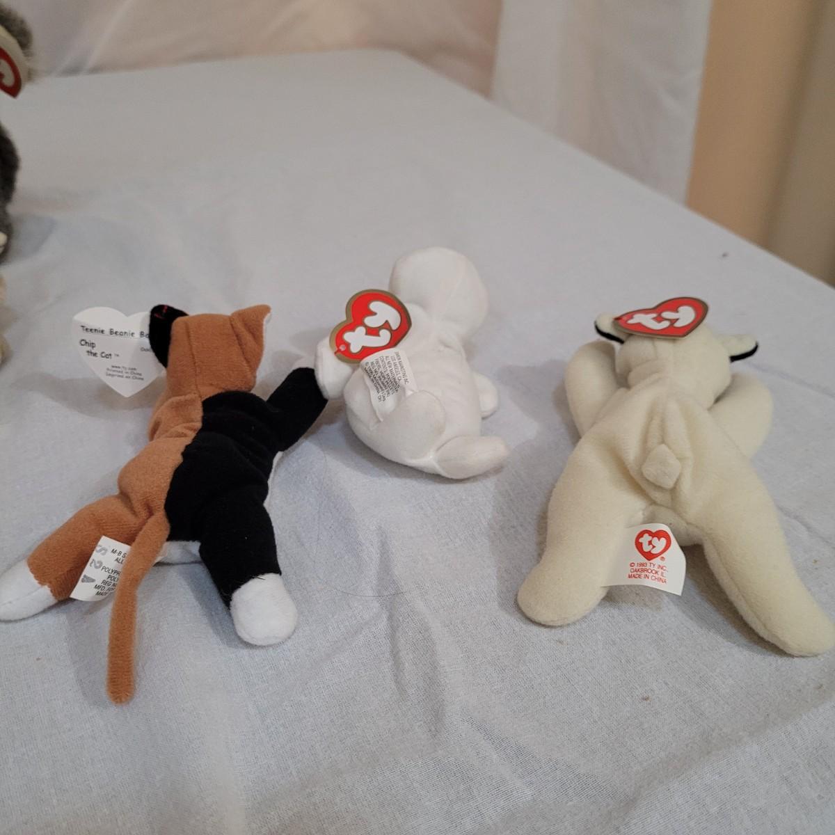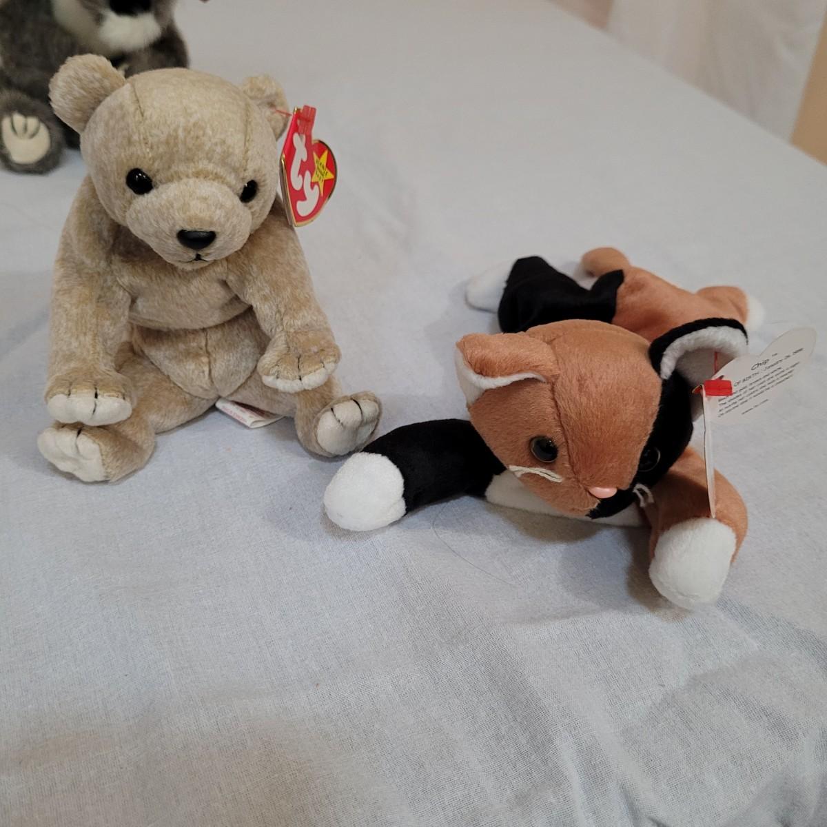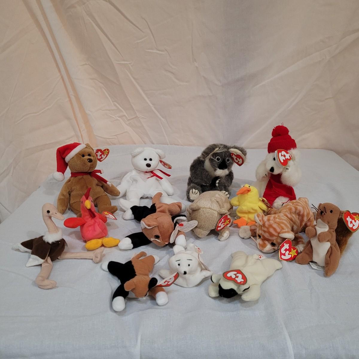 A fun variety of 14 Beanie Baby animals with tags, including cats, bears and much more. Good condition, all seem clean with no stains. All still have original tags. Shipping available.
