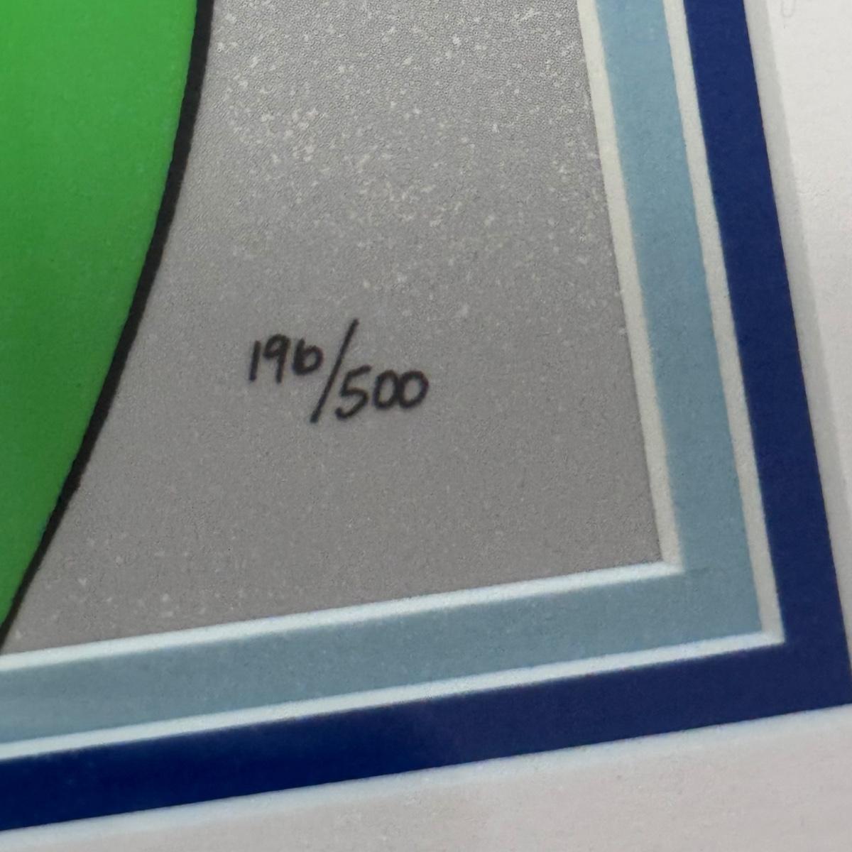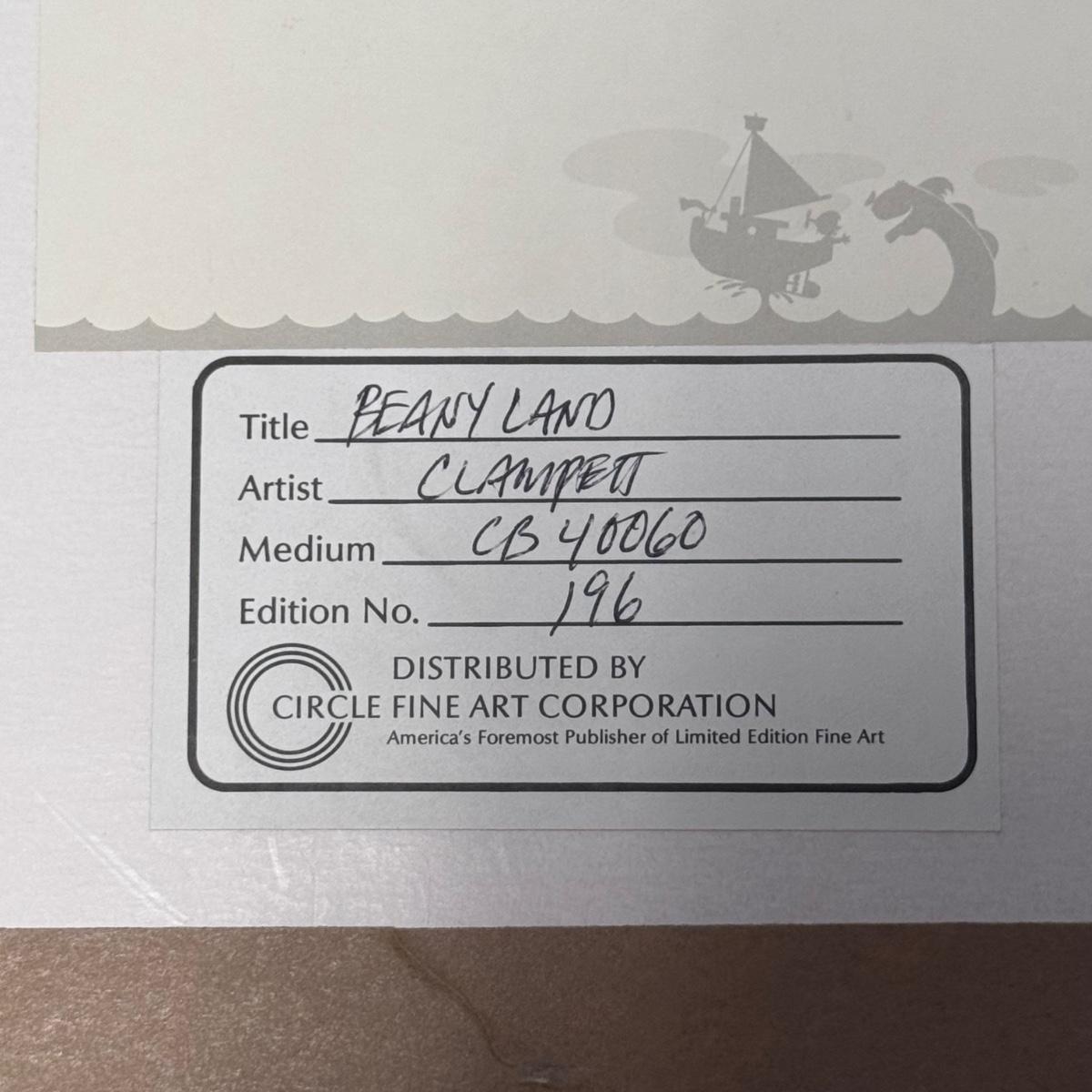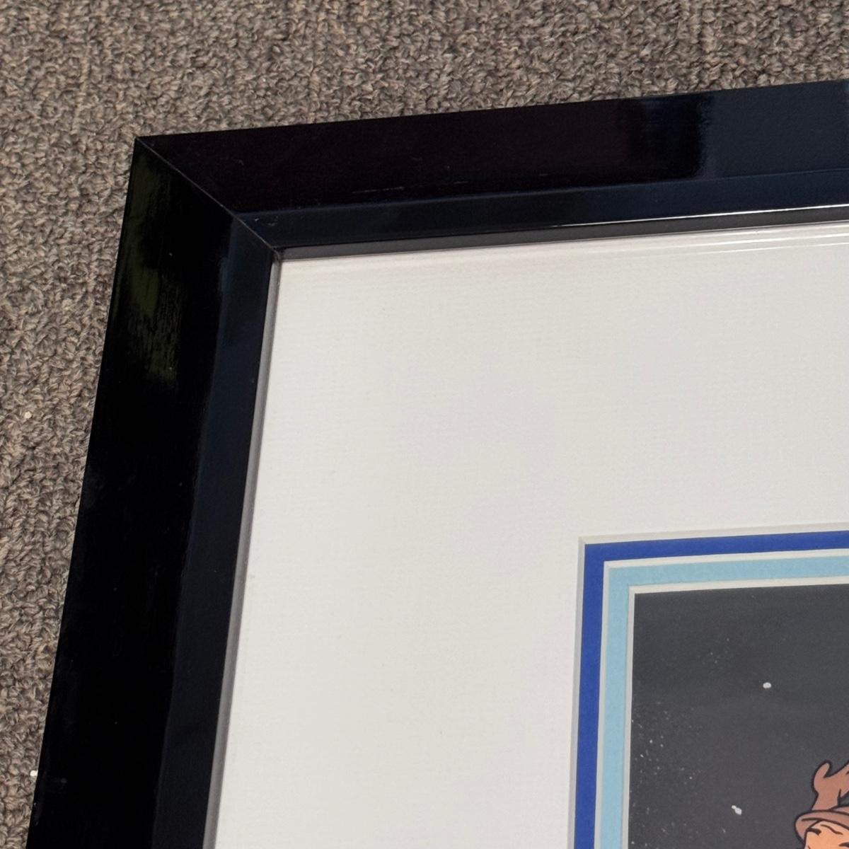 This lot includes one framed cel titled “Beanyland” by Bob Clampett Animation Art. The art is numbered 196/500 and signed and stamped by Bob Clampett. The art is protected with a plastic layer, triple matting, and a wooden frame with a black gloss painted over. The frame measures 21” x 19”H. The original invoice and certificate of authenticity is included - see last few photos.