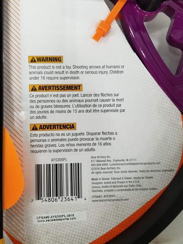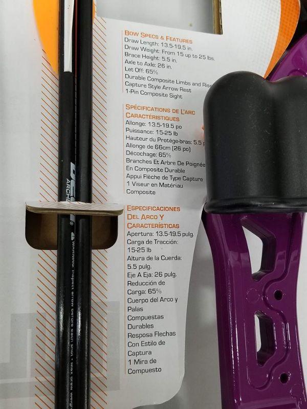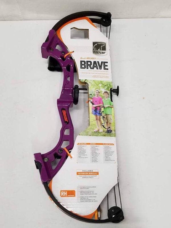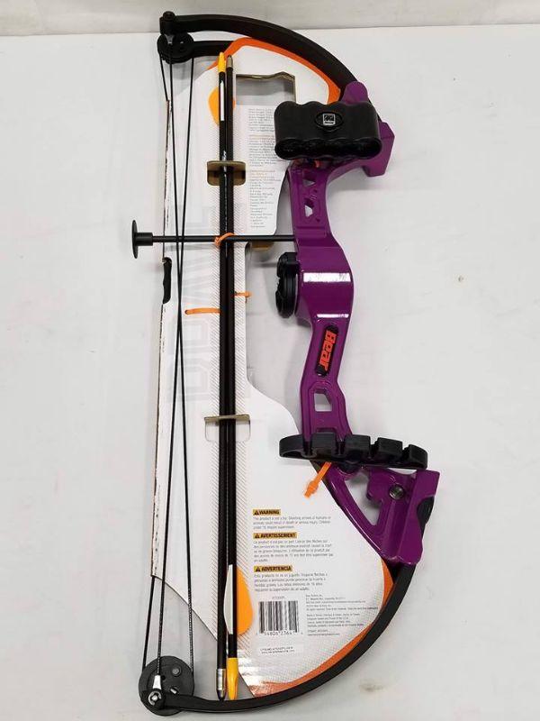 Bear Archery Brave Purple Bow Set: Compound Bow, 2 Arrows, Armguard & More - New