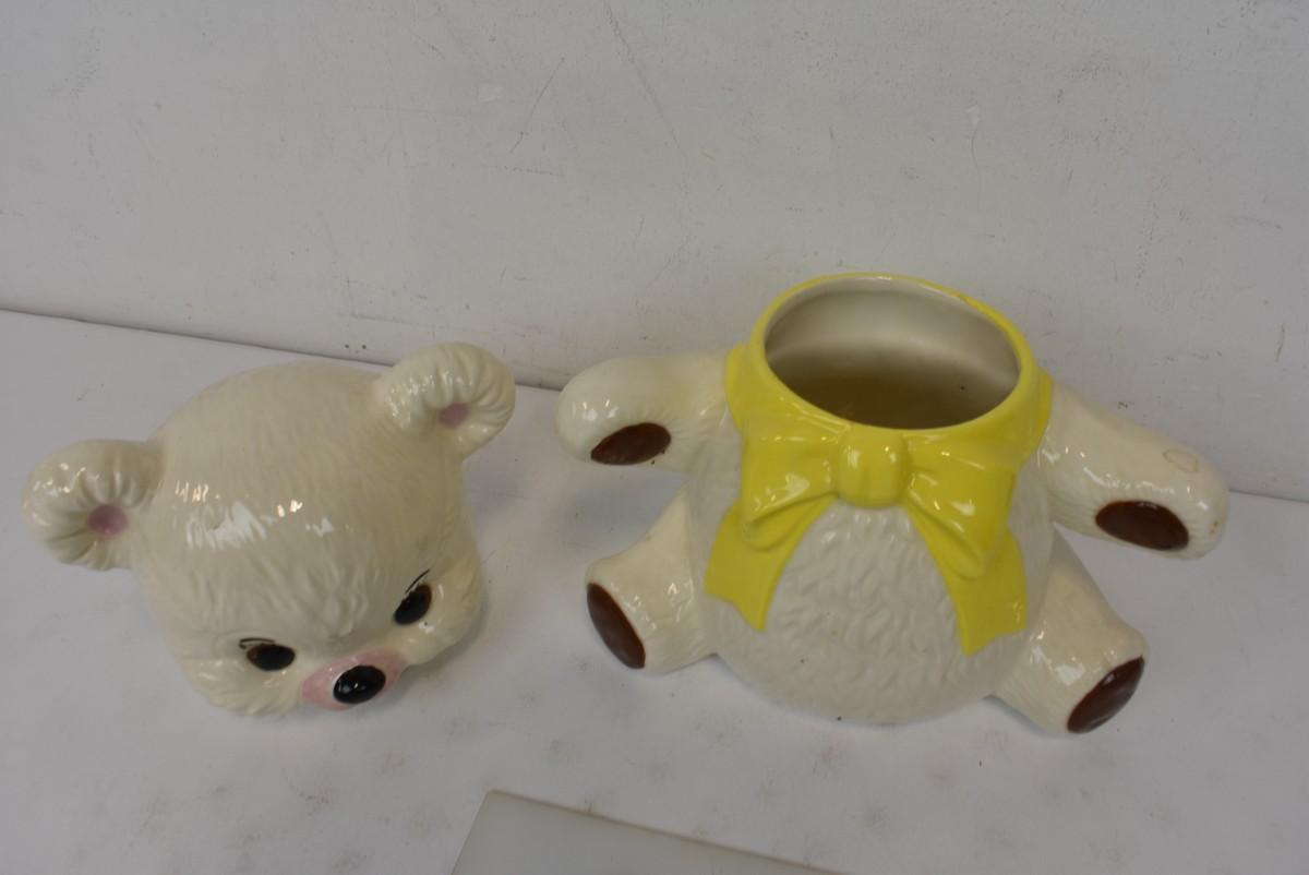 Bear Cookie Jar, White With Yellow Scarf