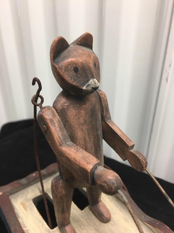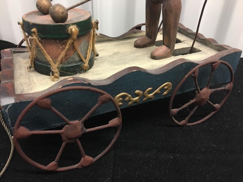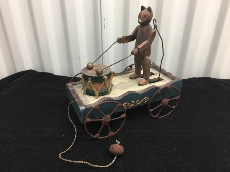 Bear Drumming Pull Toy Wood and Metal Wagon