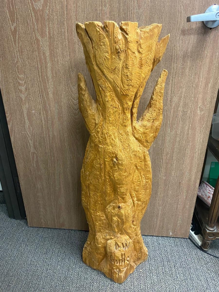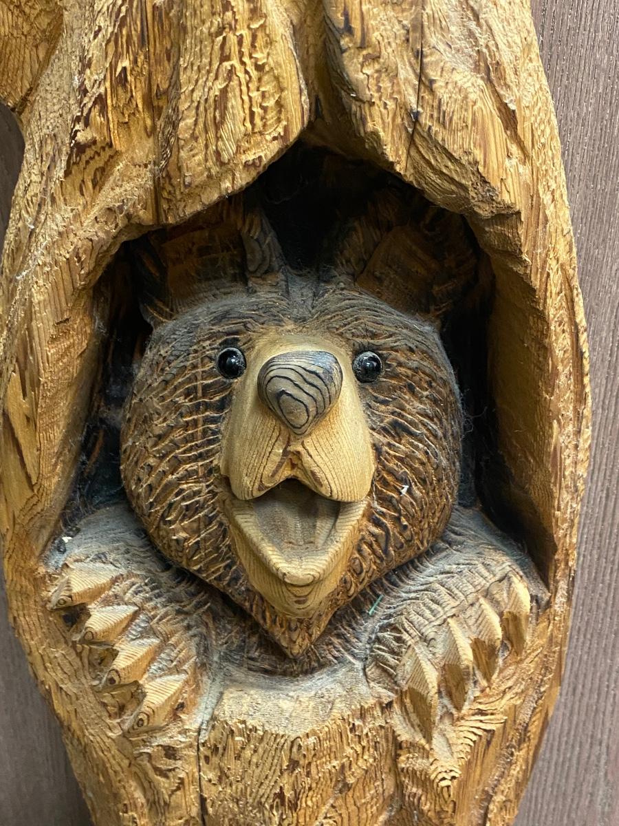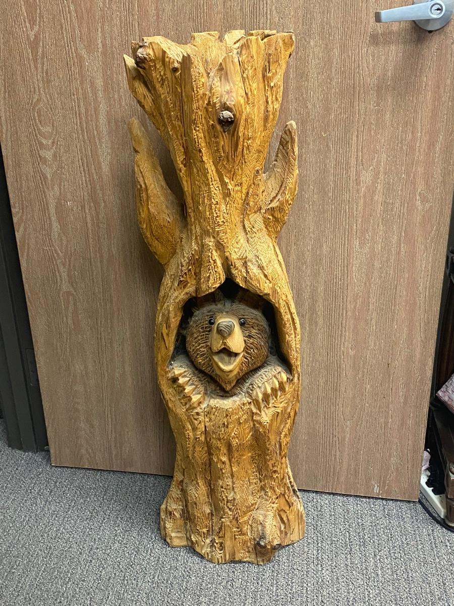 Bear Statue Peeking Out From Tree Carved Stump Chainsaw Wood Art Yard Garden Patio Rustic Decor