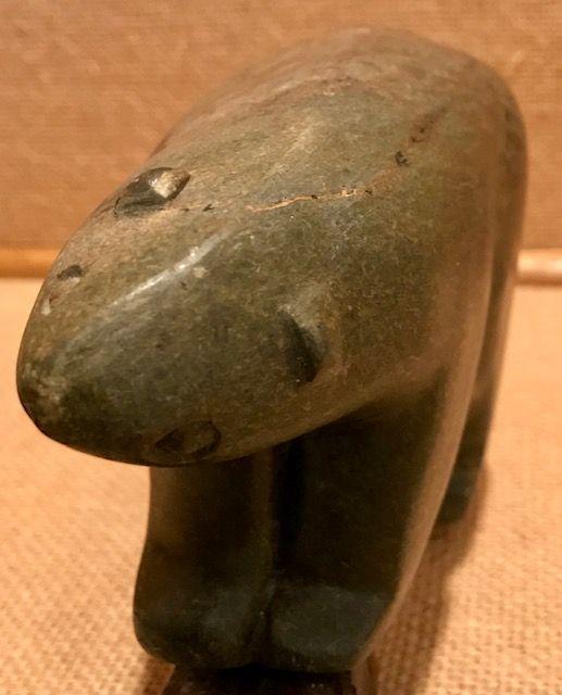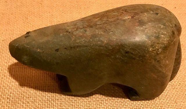 Measures 8 inches long and five inches tall. Unsigned. Very good condition.