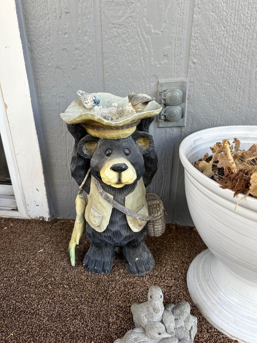 Bear bird bath measures 18.5” tall