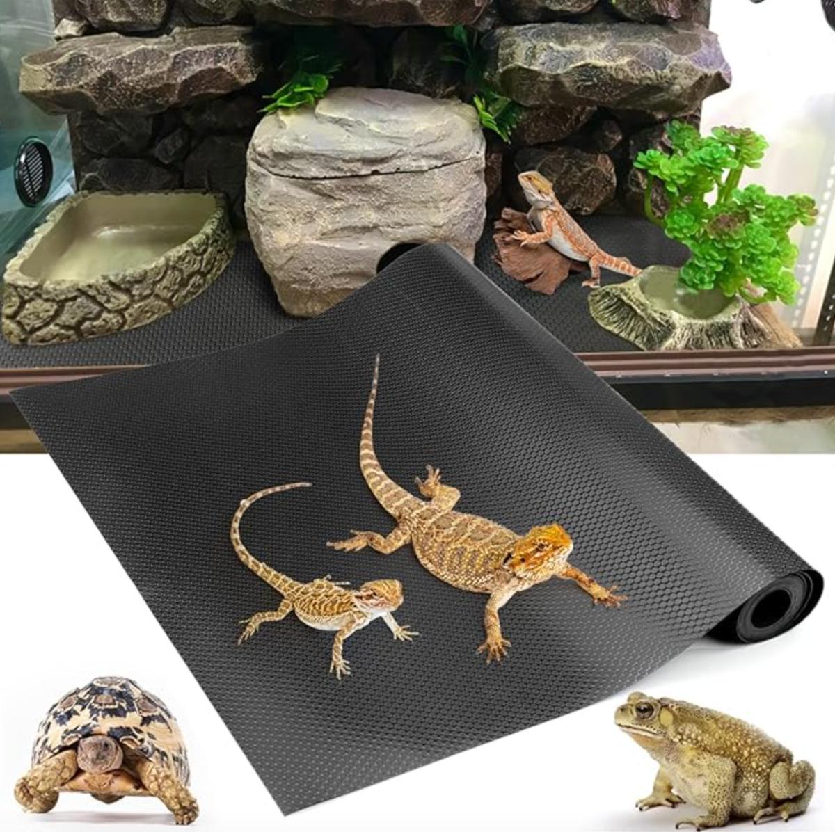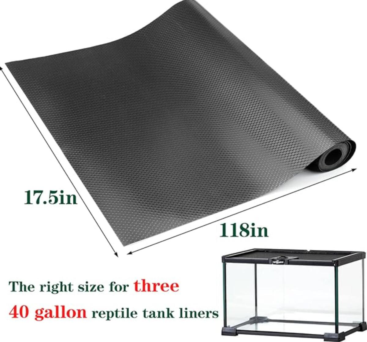 Bearded Dragon Tank Accessories, Reptile Terrarium Carpet Substrate for Leopard Gecko, Lizard, Iguana, Snake, Tortoise, Non-Adhesive Reptile Habitat Bedding(Black 118inch)
