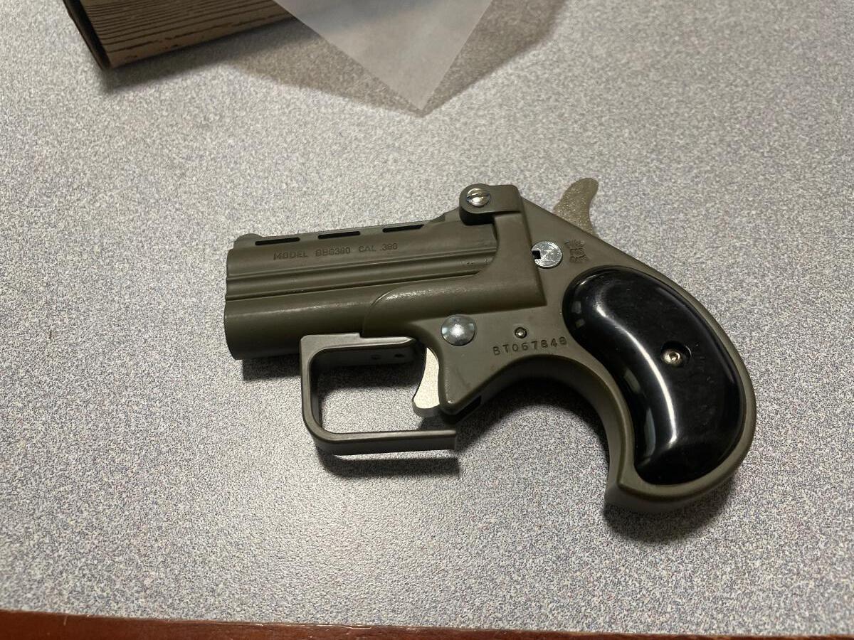 This Bearman Big Bore Derringer is ideal for personal protection and extremely easy to conceal. This model features a two-round capacity of .380 that packs a punch and is incredibly reliable. The finish on this model is OD Green. If you are looking for the ideal deep-conceal carry firearm, then this is it!