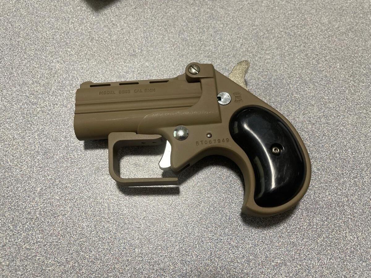 This Bearman Big Bore Derringer is ideal for personal protection and extremely easy to conceal. This model features a two-round capacity of 9mm that packs a punch and is incredibly reliable. The finish on this model is Tan. If you are looking for the ideal deep-conceal carry firearm, then this is it!
