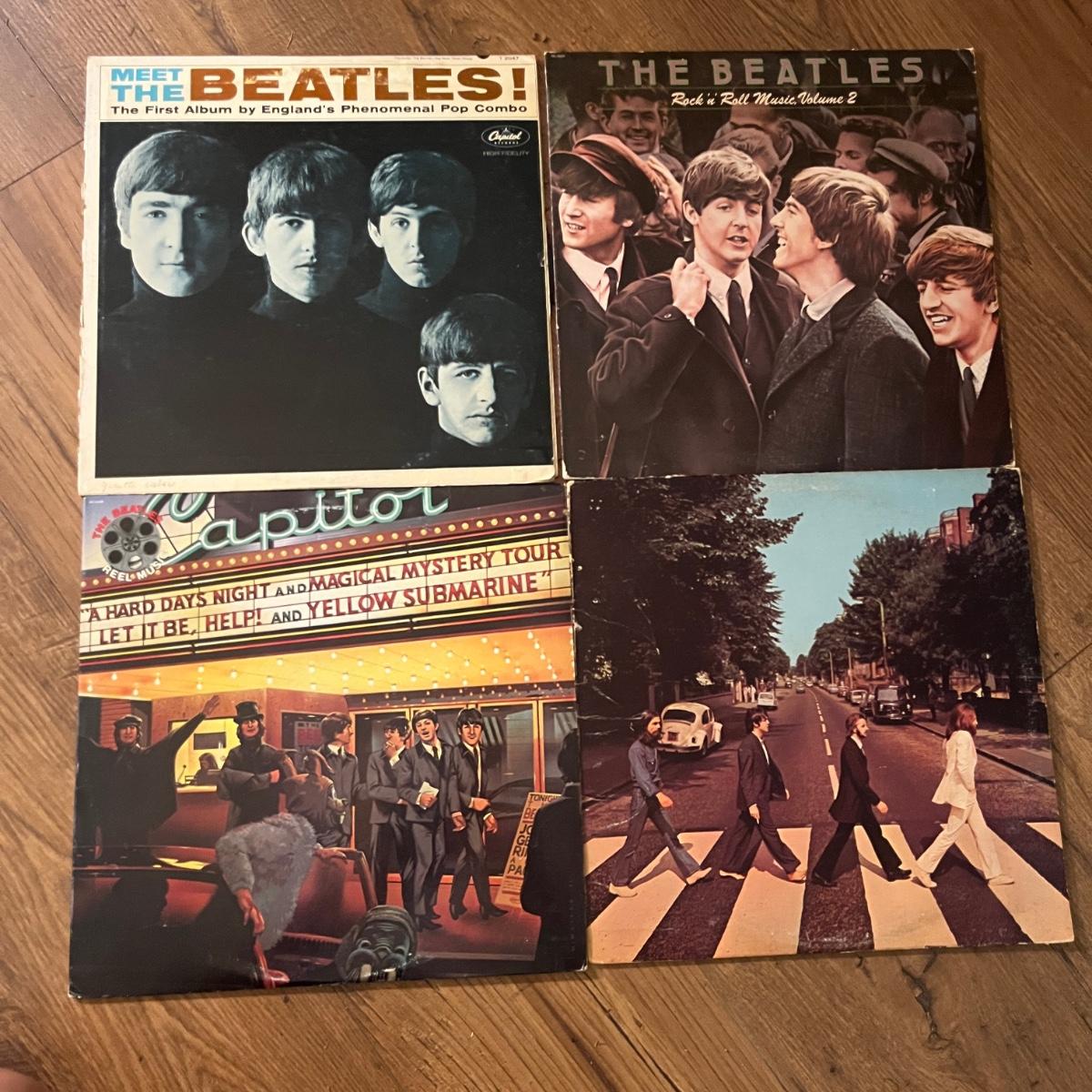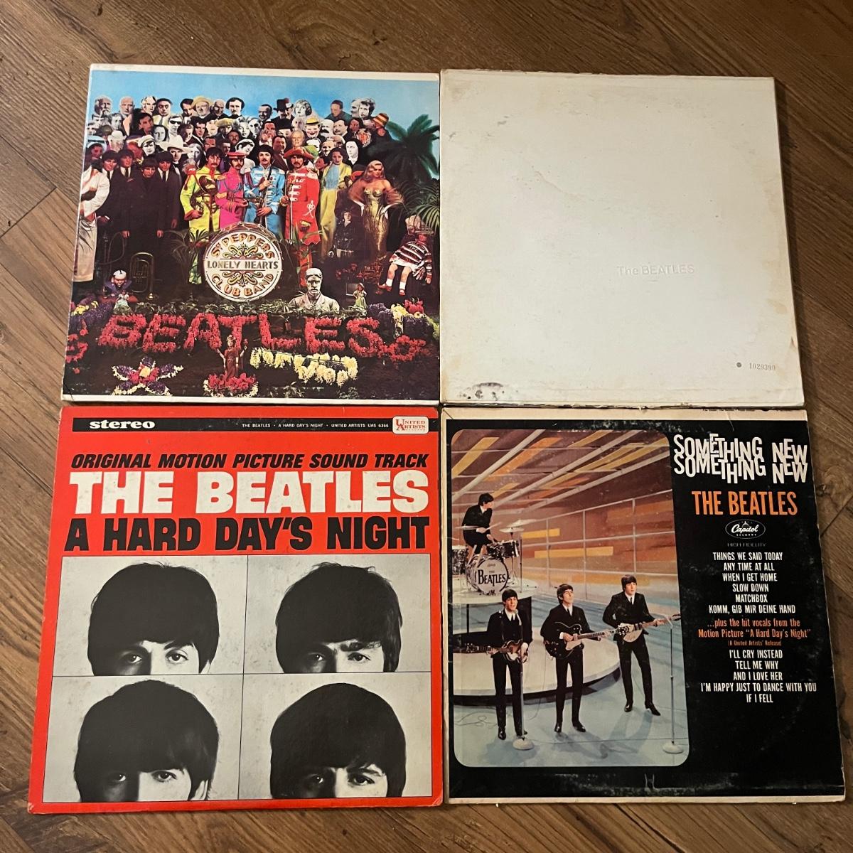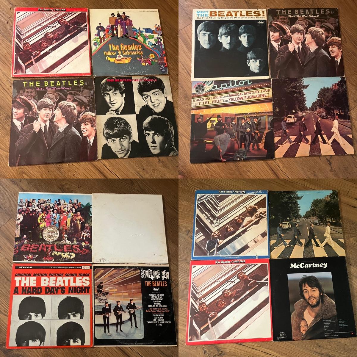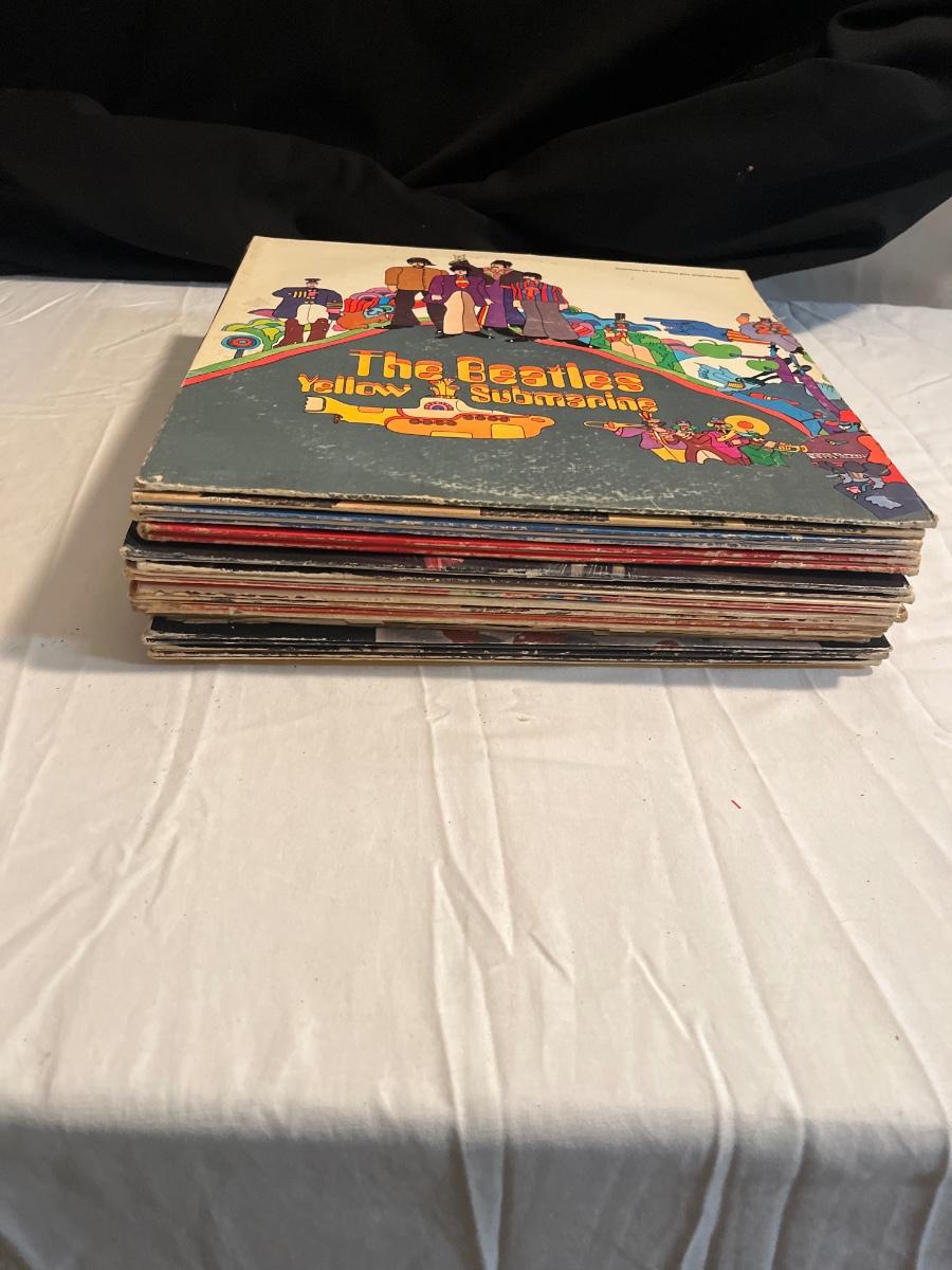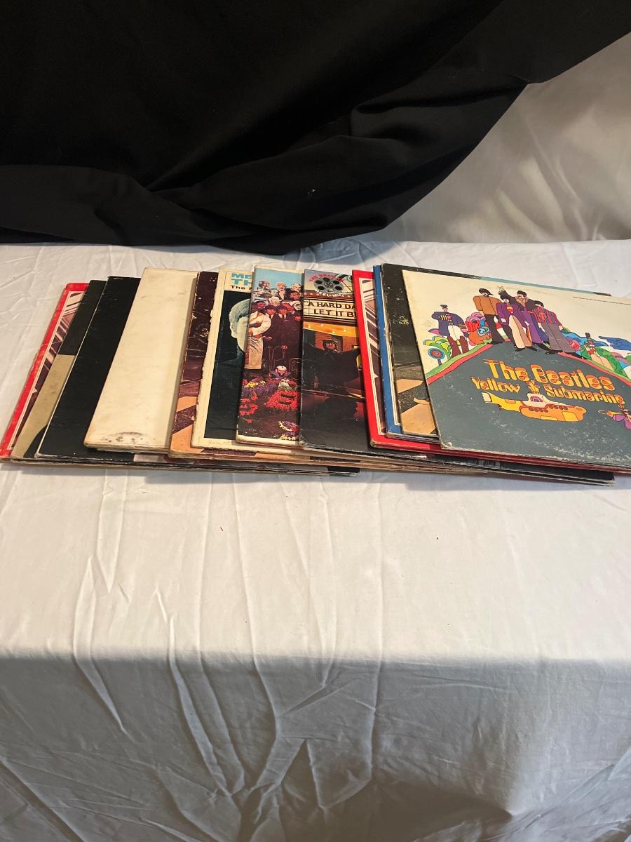 This collection of Beatles vinyl albums includes Abbey Road, White Album, A Hard Days Night, Sgt Peppers Lonely Hearts Club Band, Yellow Submarine and more. Records have scratches, see pictures.