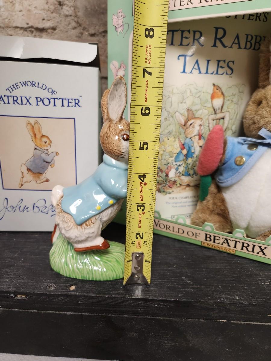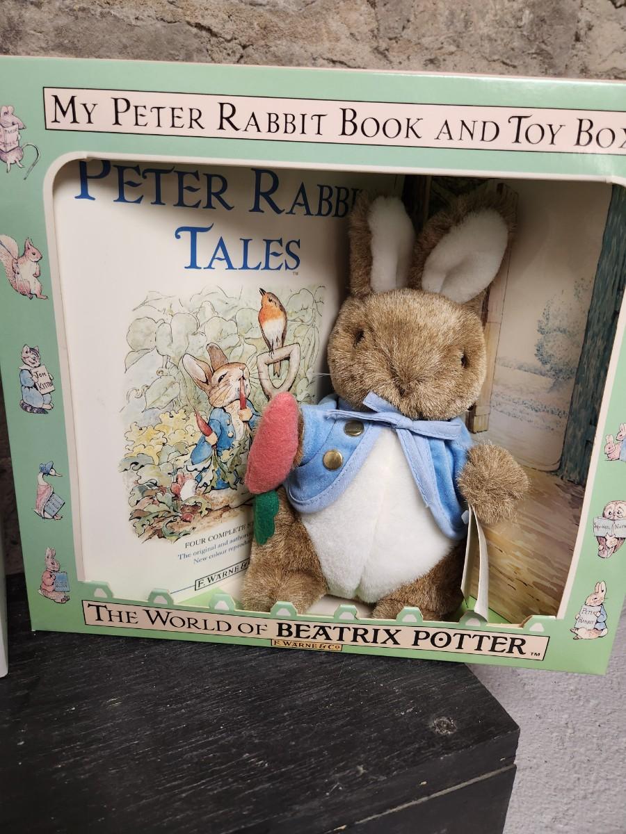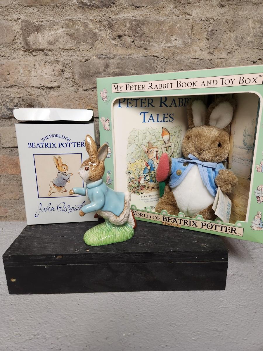 Big Peter Rabbit commemorative figurine and nib book and stuffy