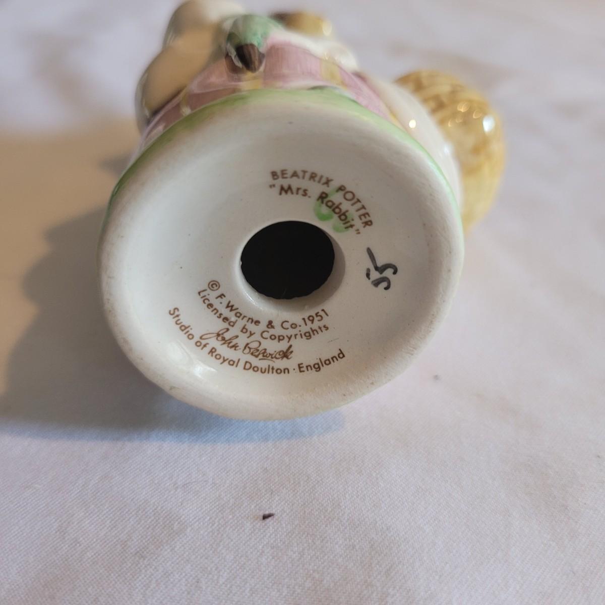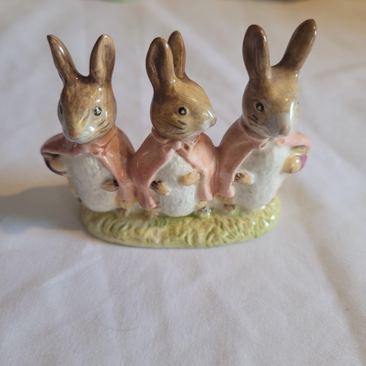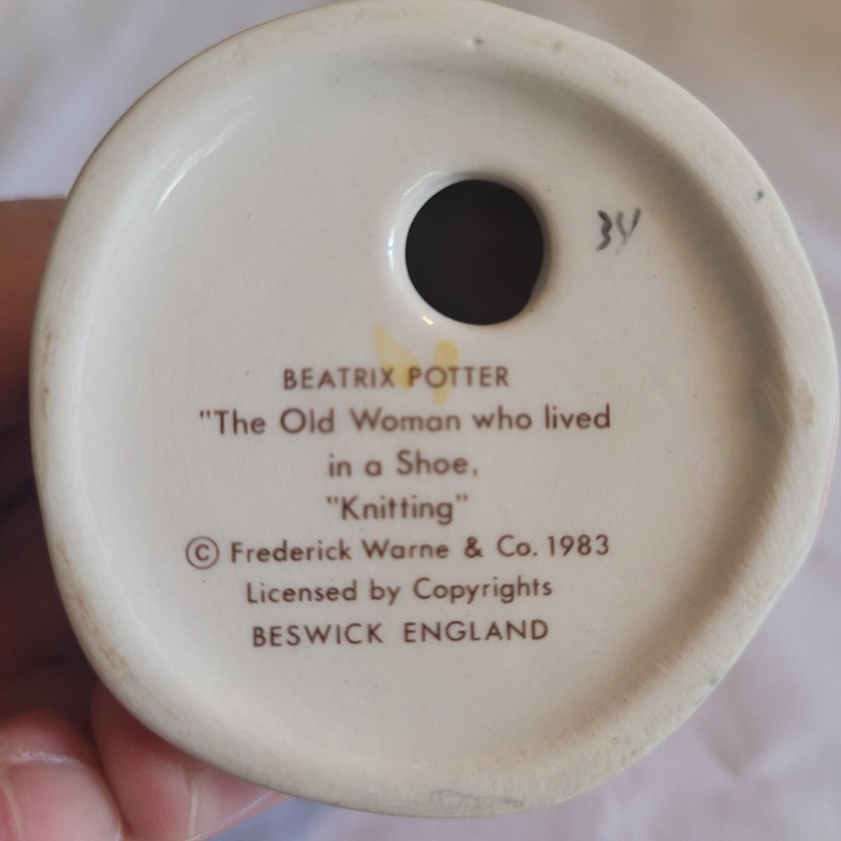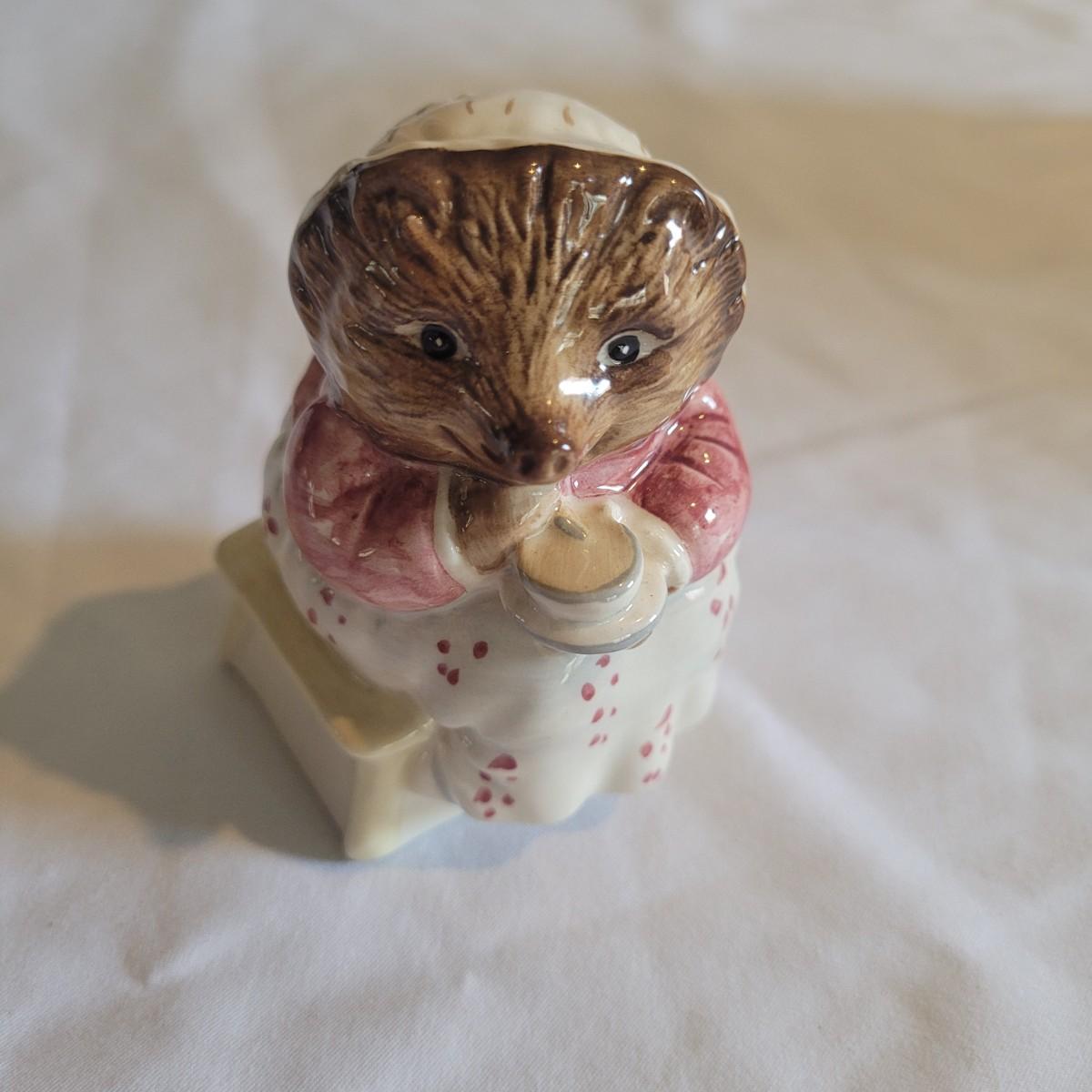 This lo is for seven individual Beatrix Potter porcelain figurines. All boxes are also included with varying degrees of quality. Figurines include "Flopsy, Mopsy and Cottontail", "Mrs. Rabbit", "Hunca Munca", "The Old Woman Who Lived In a Shoe", "Jemima Puddleduck", "Mrs. Tiggy Winkle Takes Tea", and "Tailor of Gloucester". The tallest figurine is 4.5" tall. None of the figurines have any visible damage.