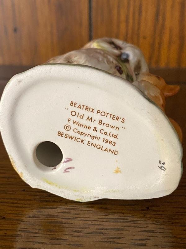 Vintage Beatrix Potter figurine Old Mr. Brown. 1983. Good condition.