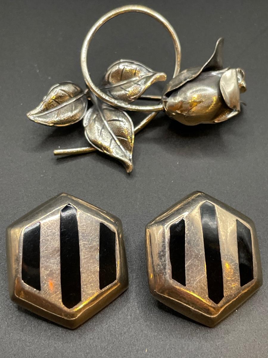 Beau Sterling brooch with 925 Mexico clip on earrings