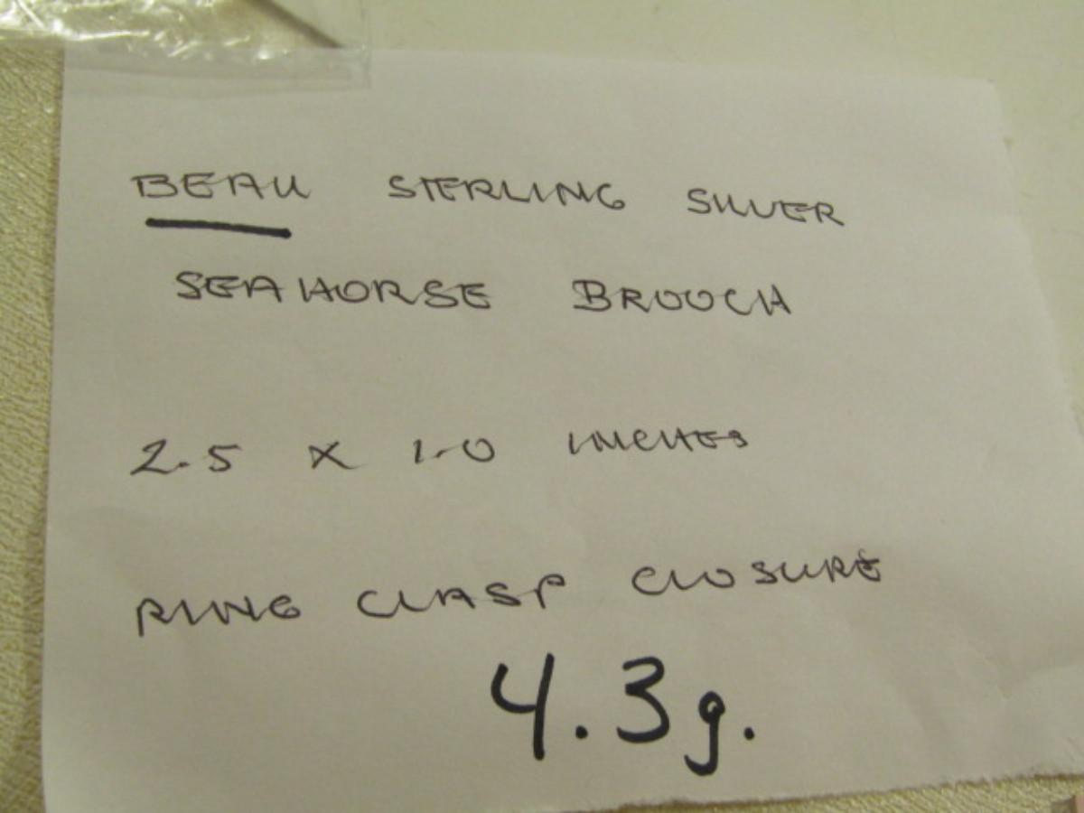 Beau Sterling Silver Seahorse Brooch- Approx 4.3 Grams (#12)