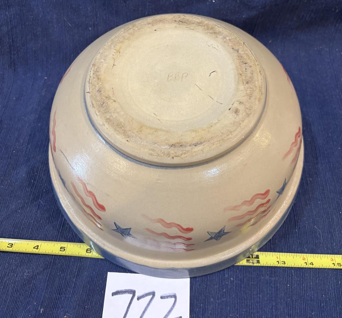Beaumont Brothers Pottery BBP Stoneware Large Mixing Bowl Stars Stripes