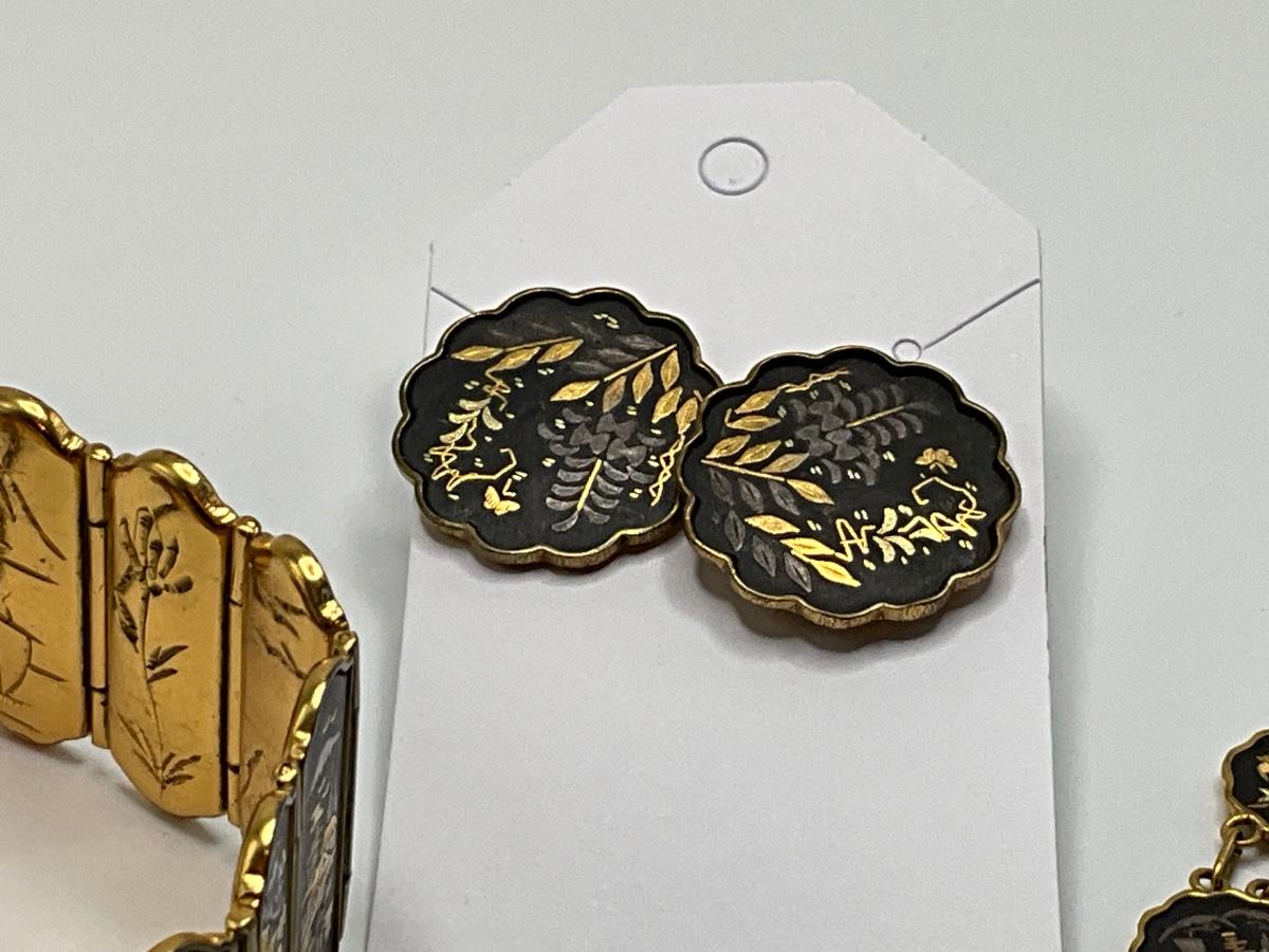 Vintage Japanese Damascene clip earrings.