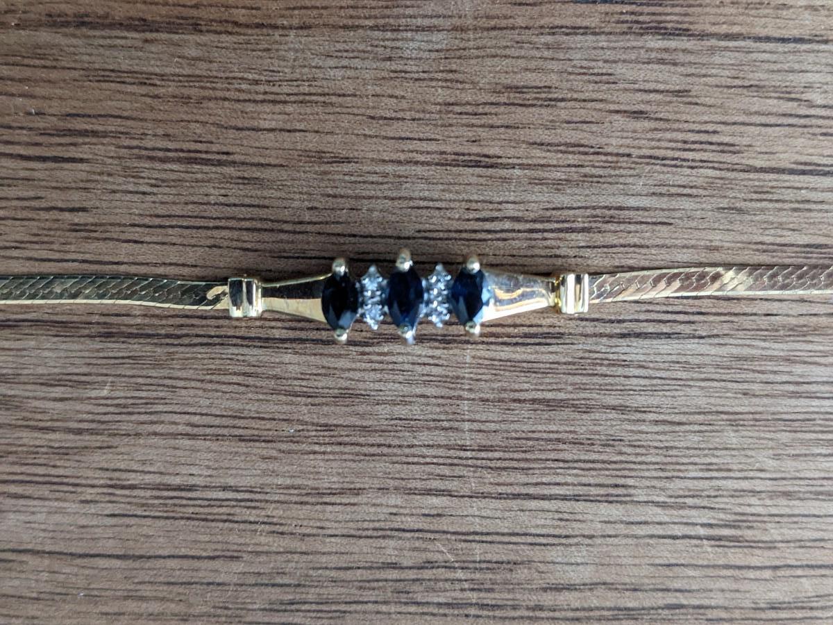 Beautiful 14k Gold, Bracelet with 3 Lovely Blue Sapphires,4 diamonds .08