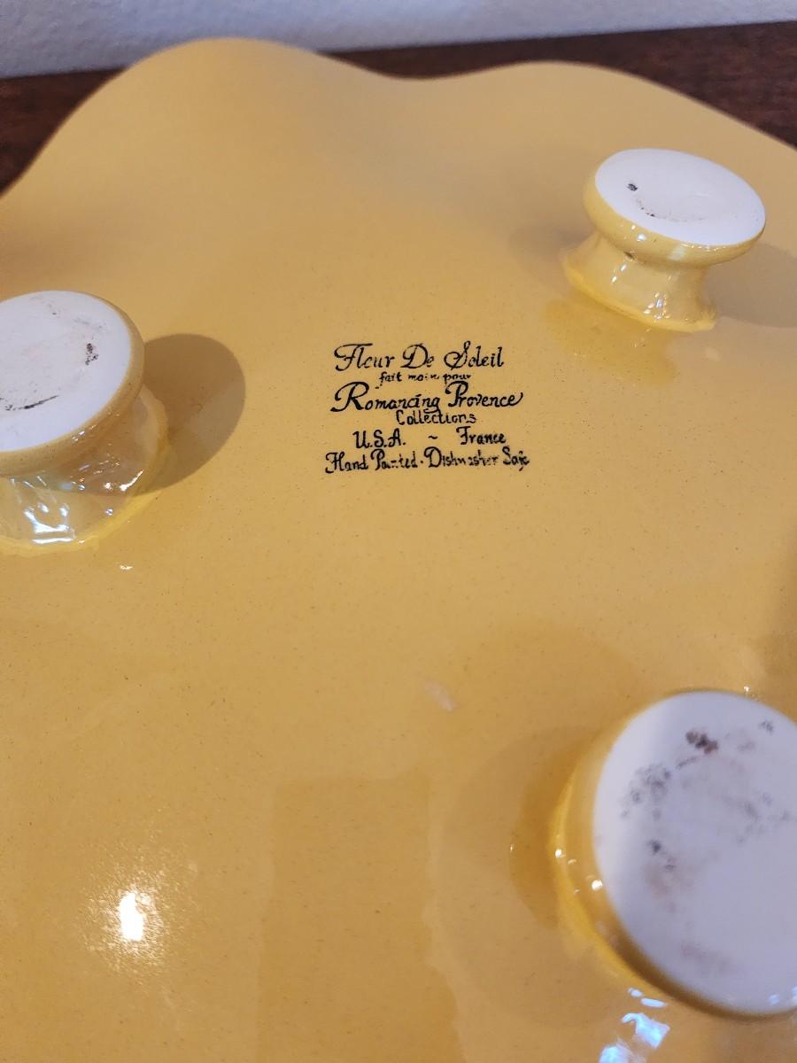 Beautiful 16" free form footed sunflower platter - Fleur de Soleil Romancing Provence Collection - Hand painted