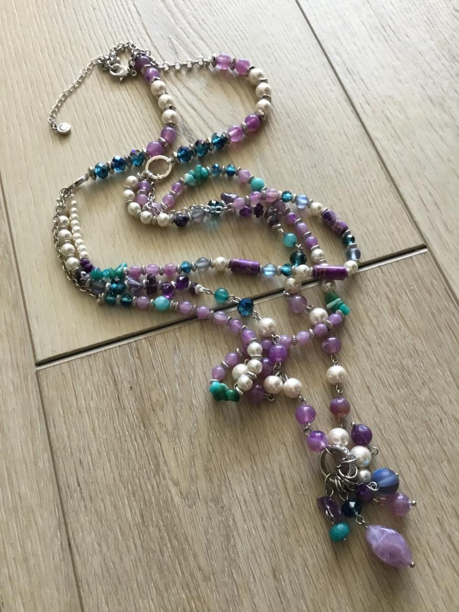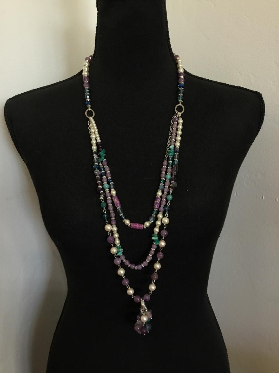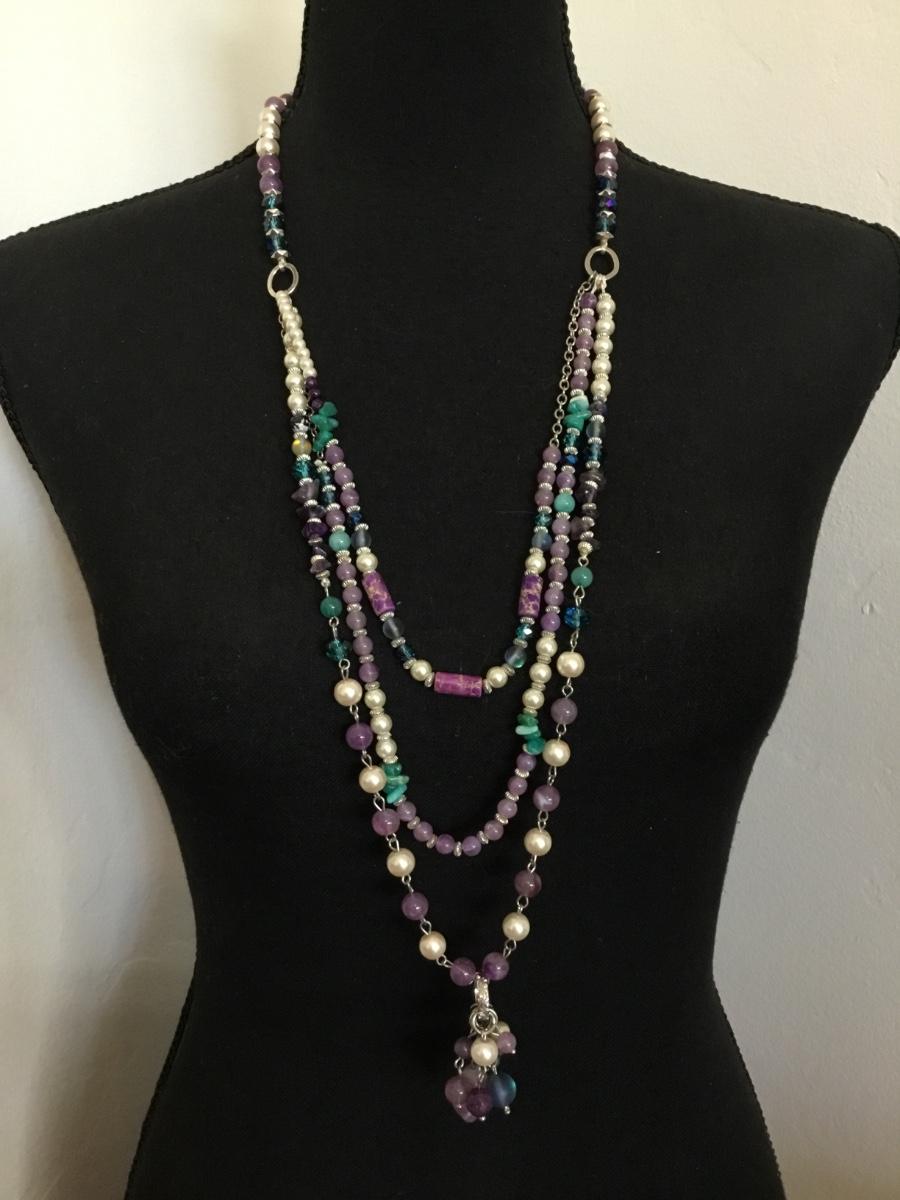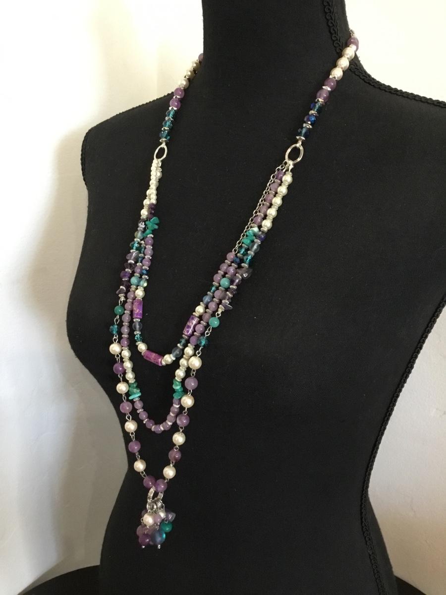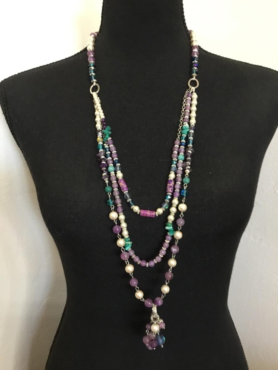 Beautiful 1946 Silvertone, multicolored faceted, glass, stone bead statement necklace, very beautiful