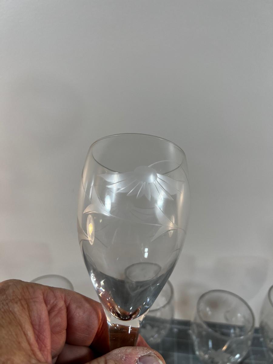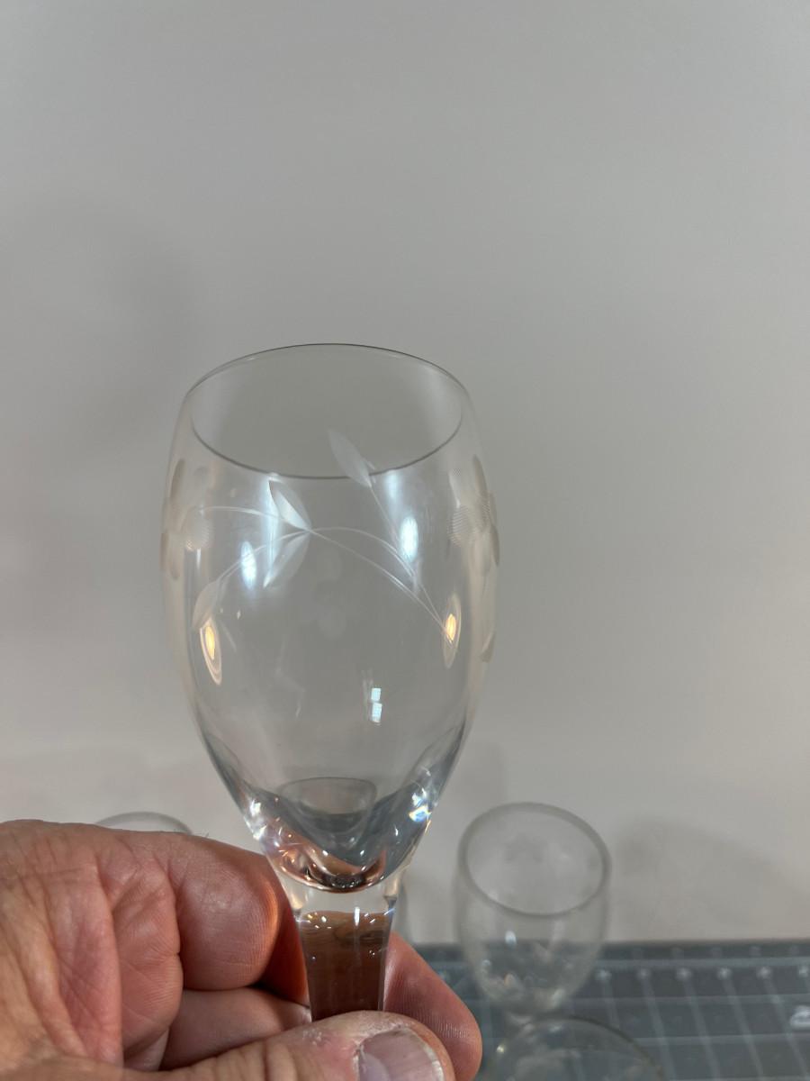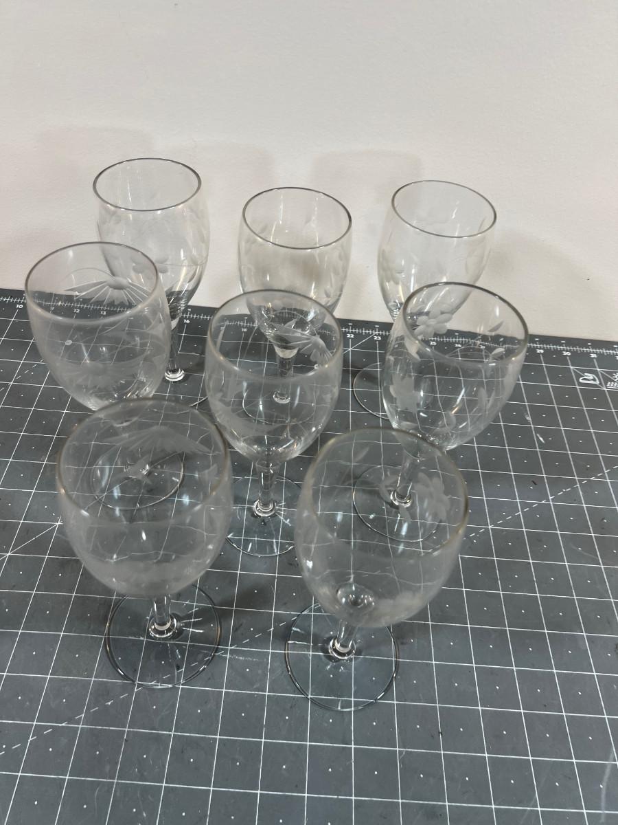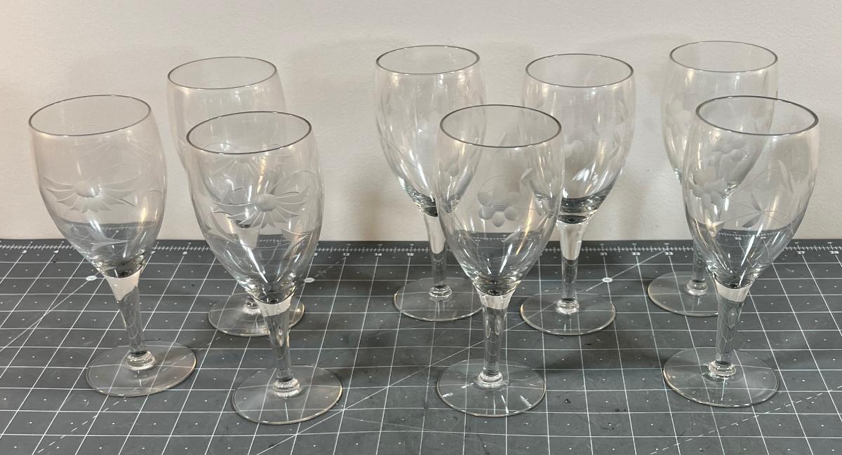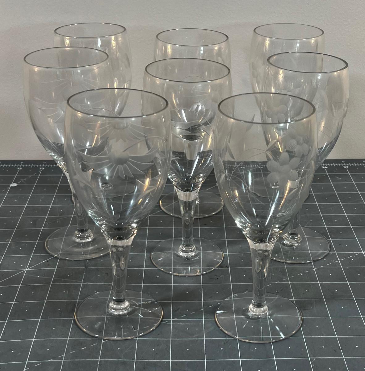 Beautiful 2 Patterns of Etched Wine Glasses, 8 total