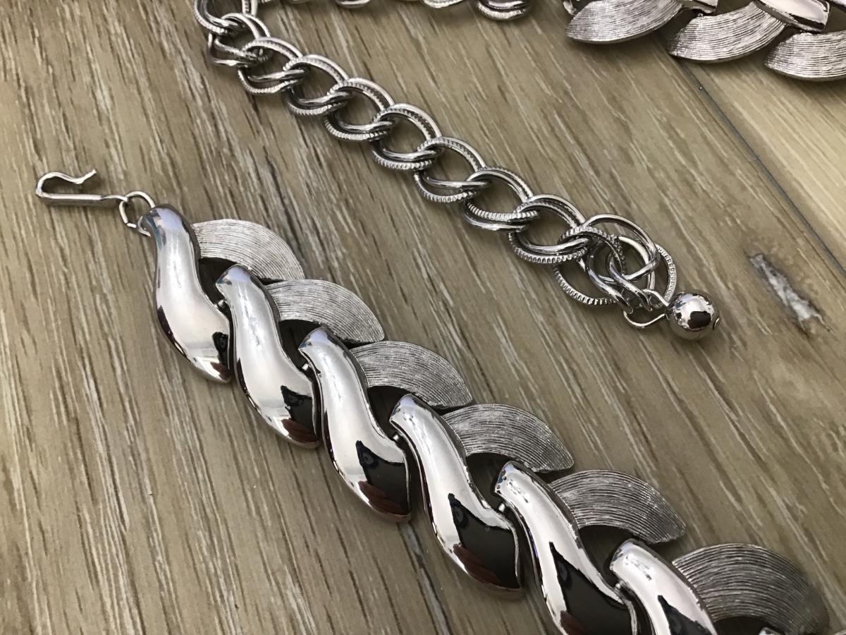Beautiful 2 Tone Silver Linked Chunky Necklace