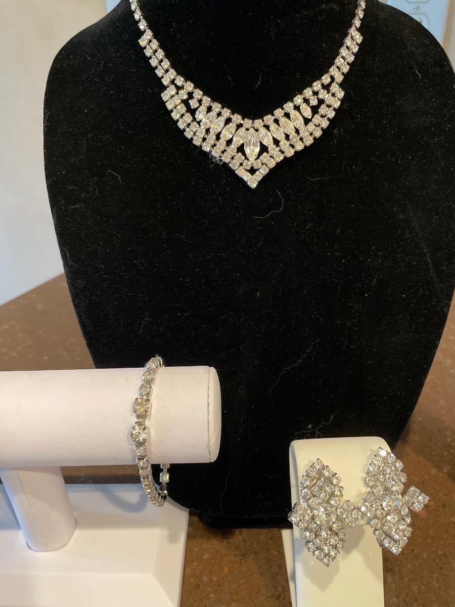 Necklace, bracelet and earrings have all stones in tact.
