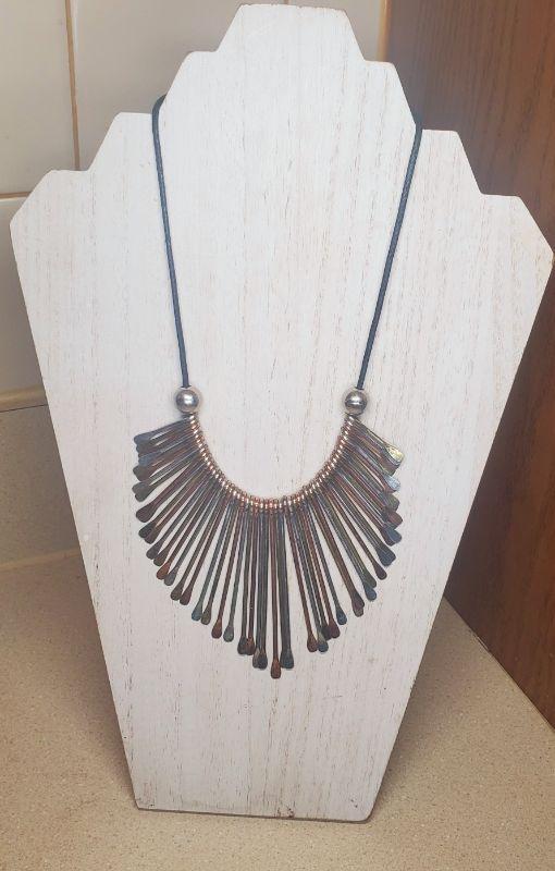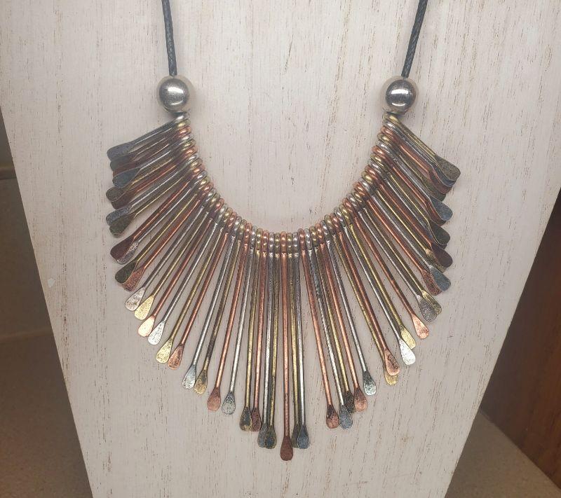 BEAUTIFUL 3 TONE METAL ART NECKLACE
