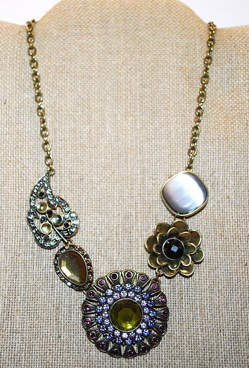Beautiful 5 "Piece" NECKLACE with Multi-Color Shapes, Stones, Flowers, Teardrops & Circles on a Gold Tone Chain and Lobster Clasp 18" L