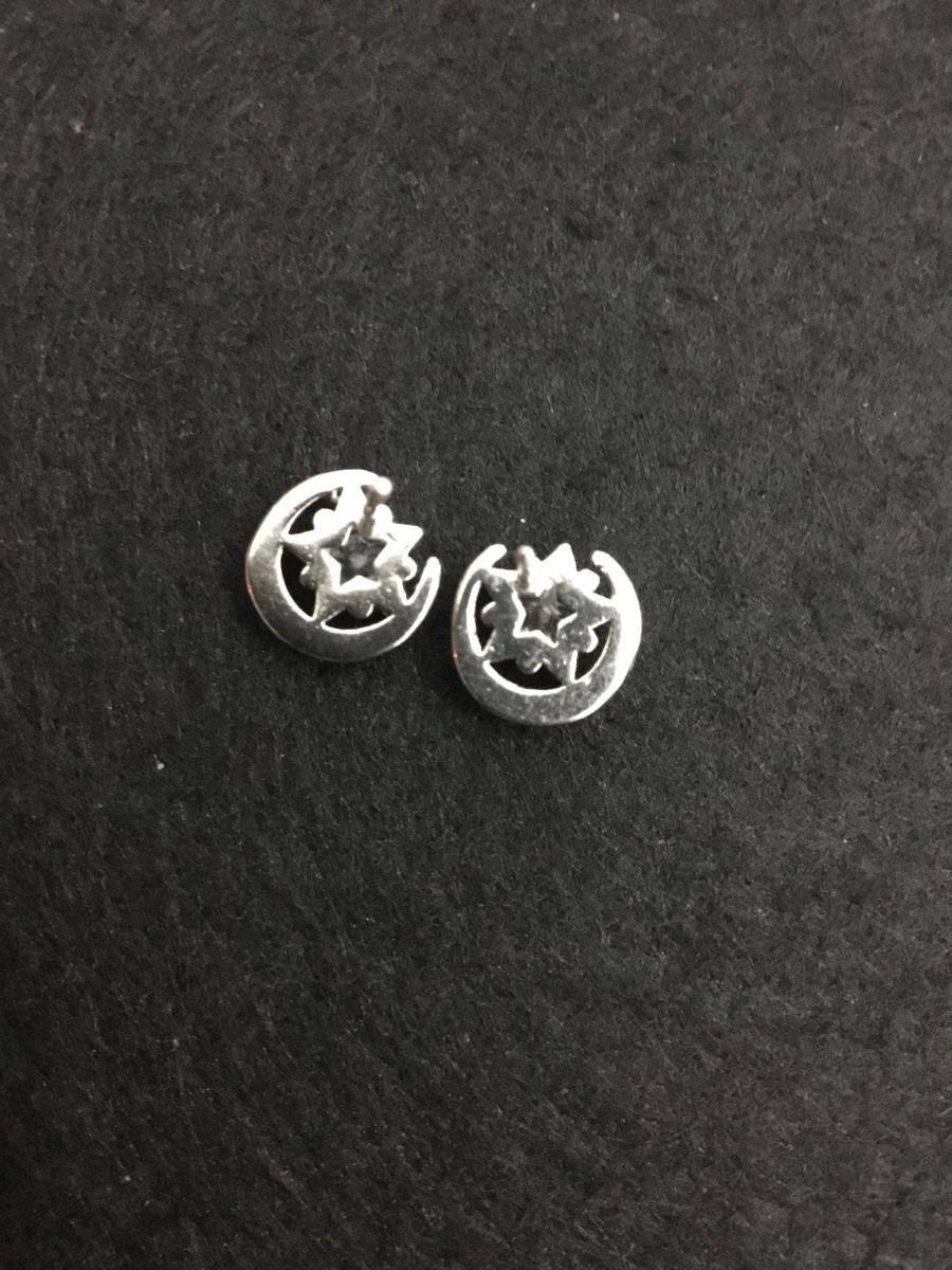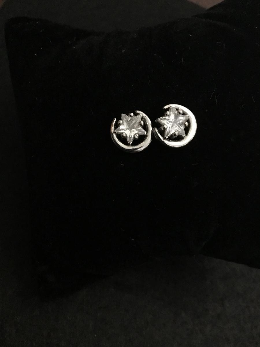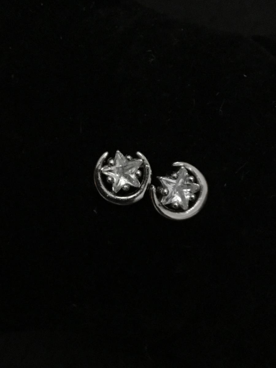 Beautiful, 925 sterling silver, half crescent, moon, and star studded earrings