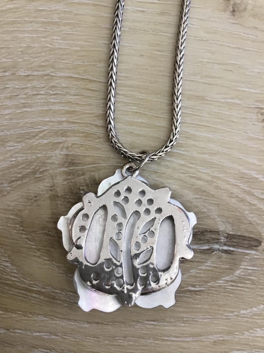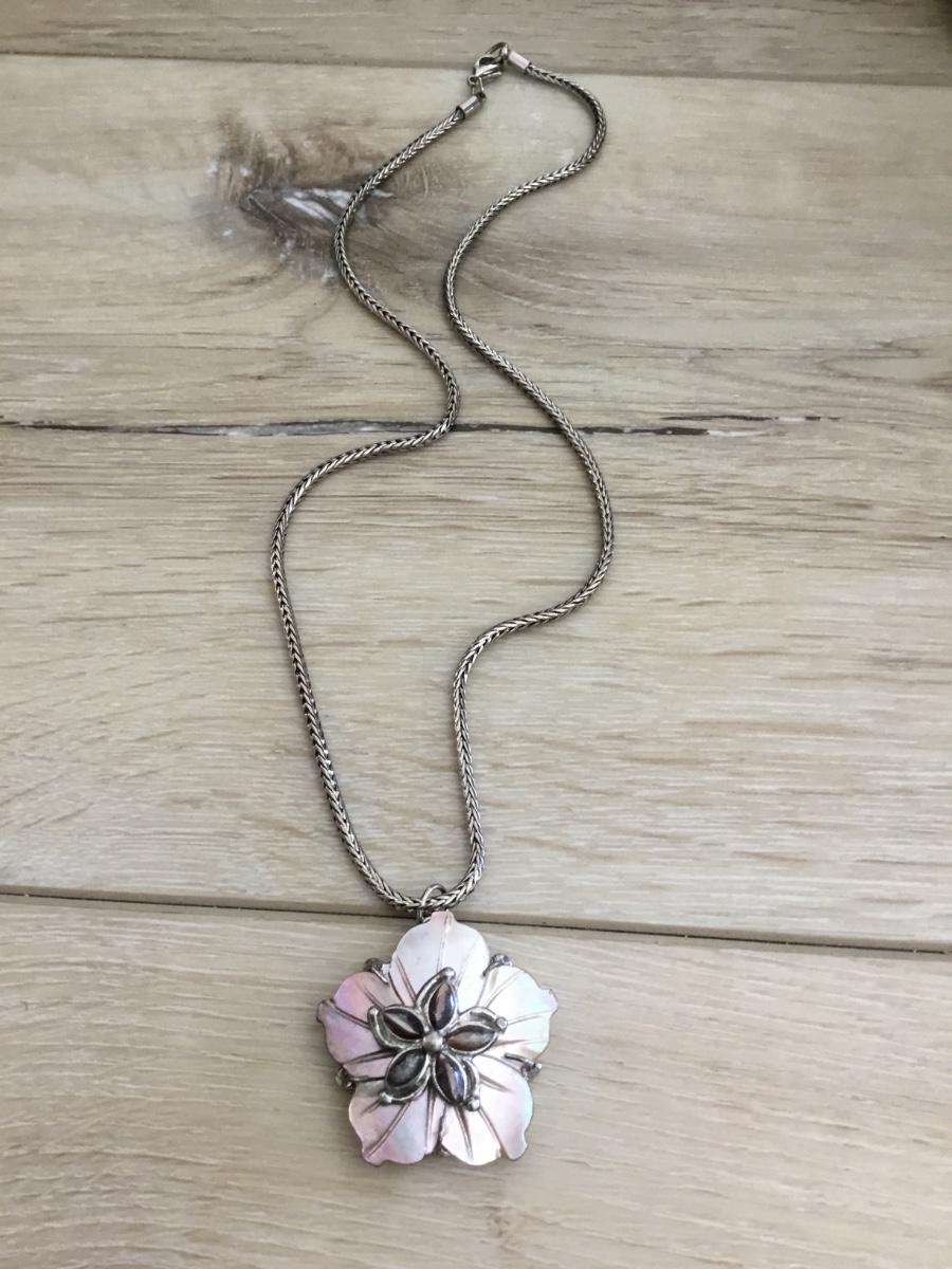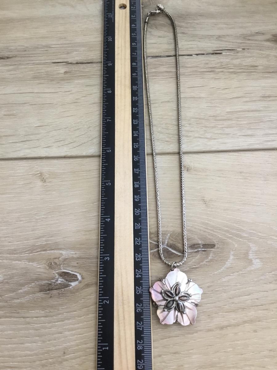 Beautiful Abalone Flower pendant with silver tone chain necklace