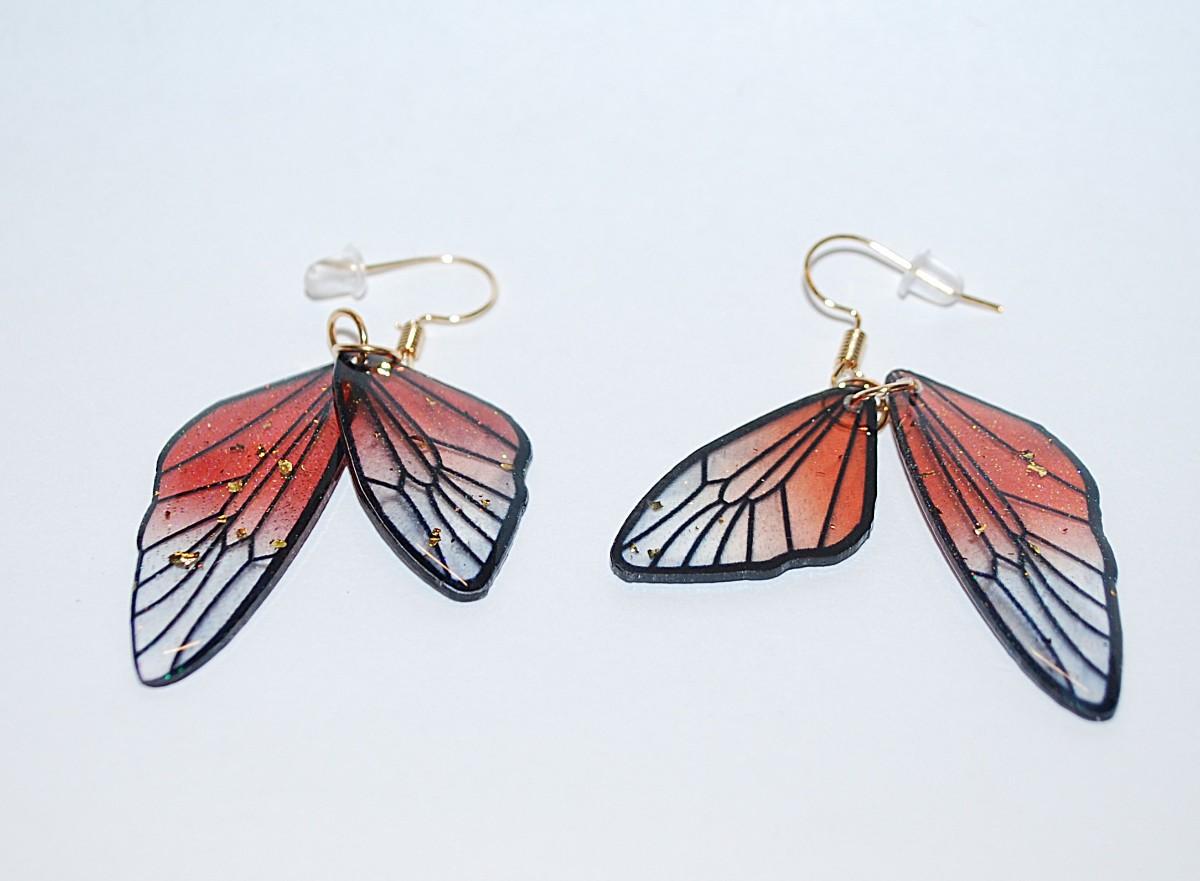 Beautiful Acrylic BUTTERFLY WINGS EARRINGS (1¾" x w½") with Black Lines, Glitter and Gold Tone Wire Hook Clasp