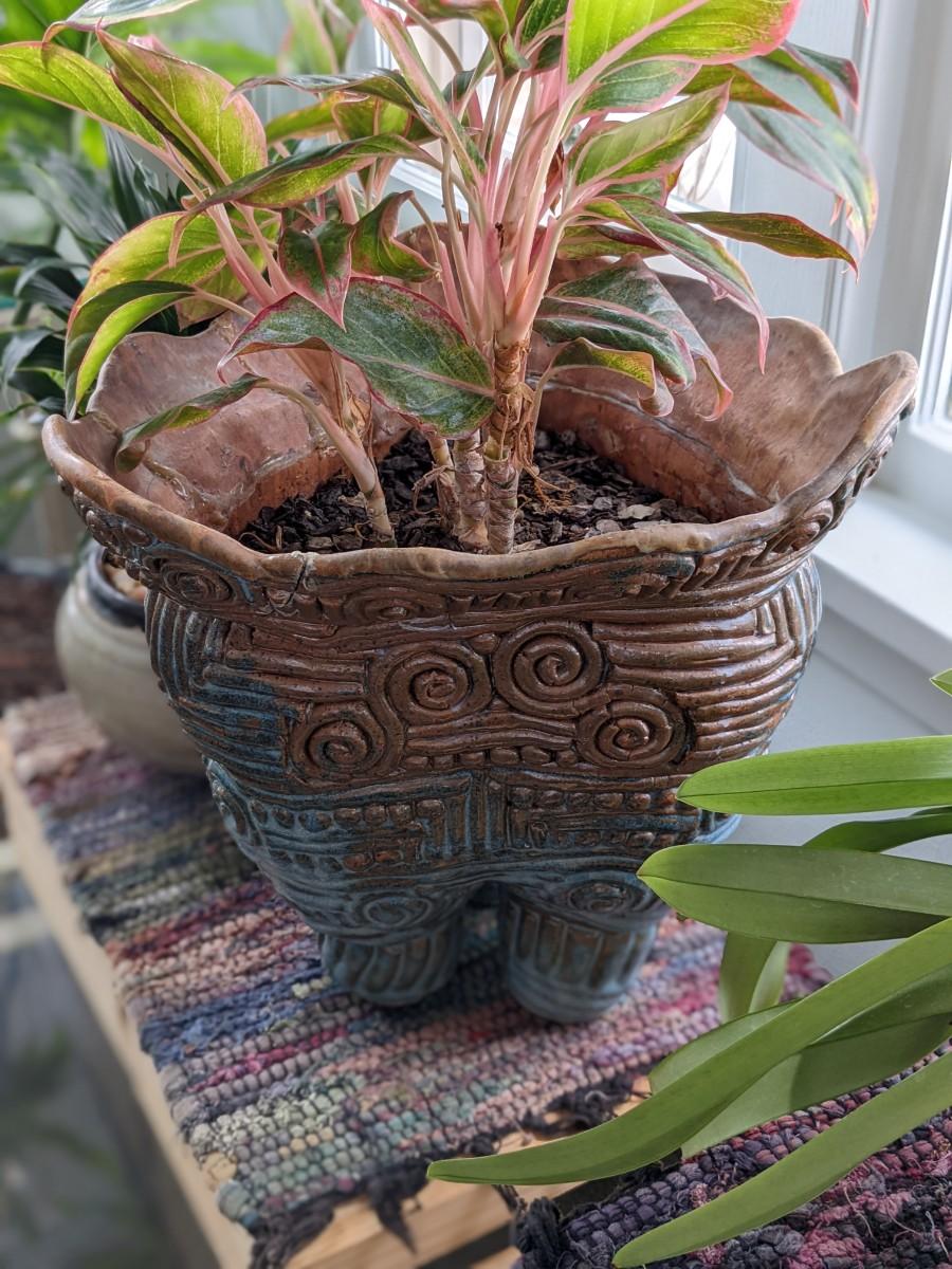 Beautiful Aglaonema Plant and Handmade Ceramic Planter