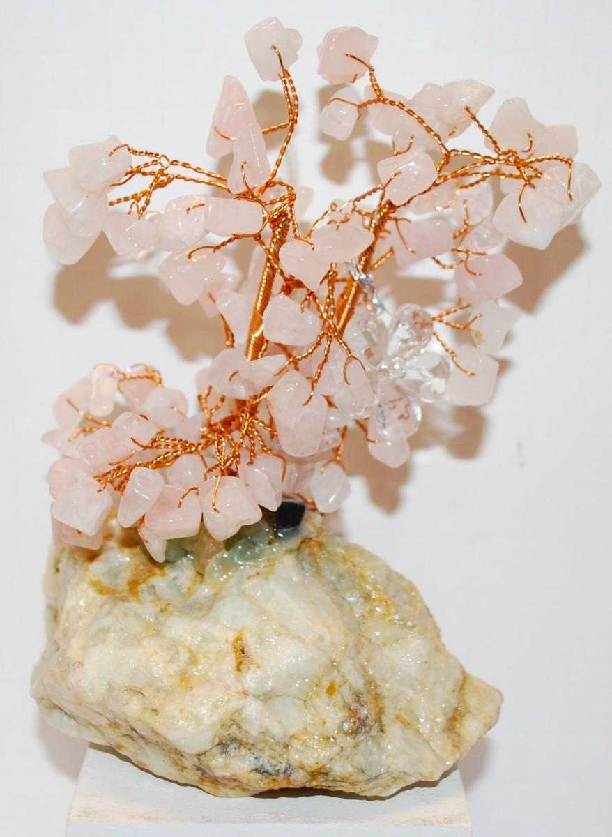 Beautiful All Pink Quartz Stones Tree with Copper Wire 6" H