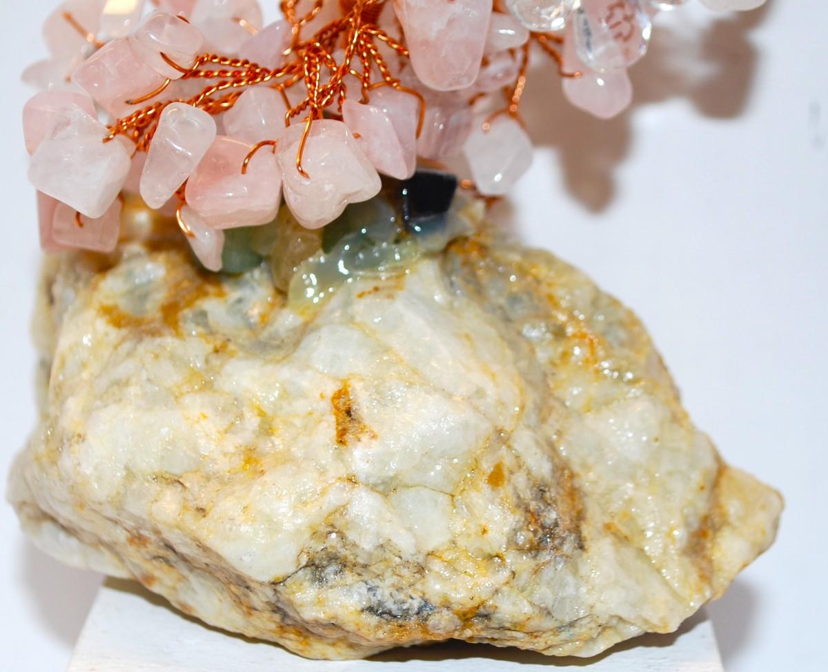Beautiful All Pink Quartz Stones Jewelry Bead Tree with Copper Wire 6" H