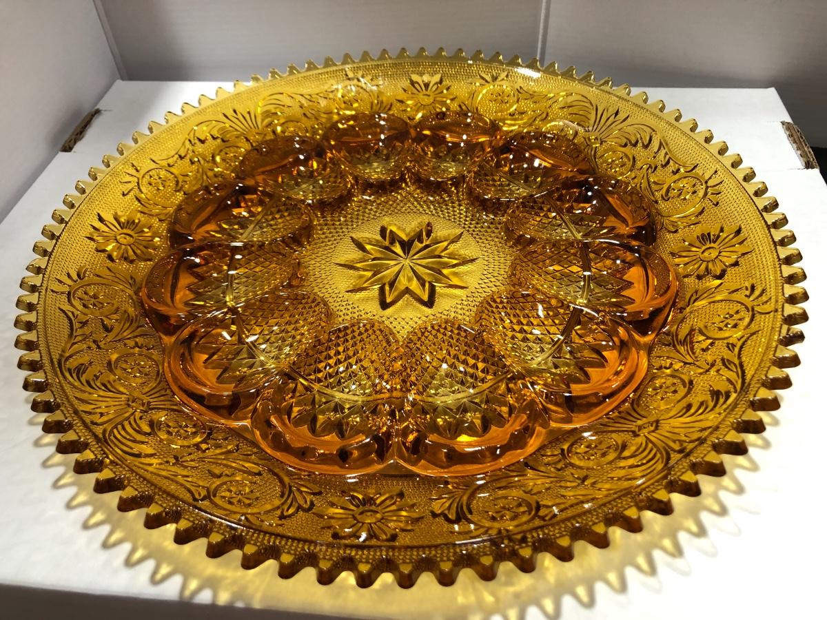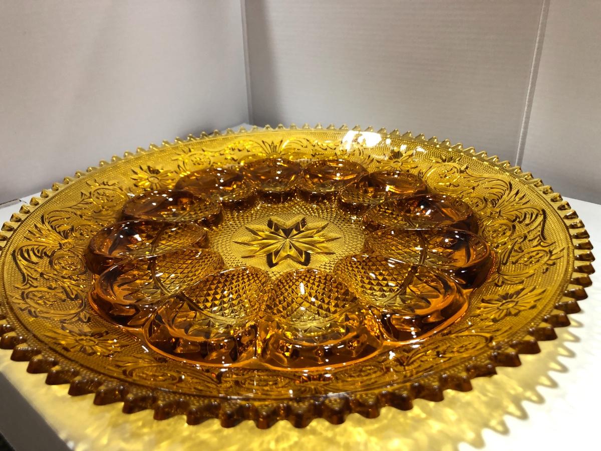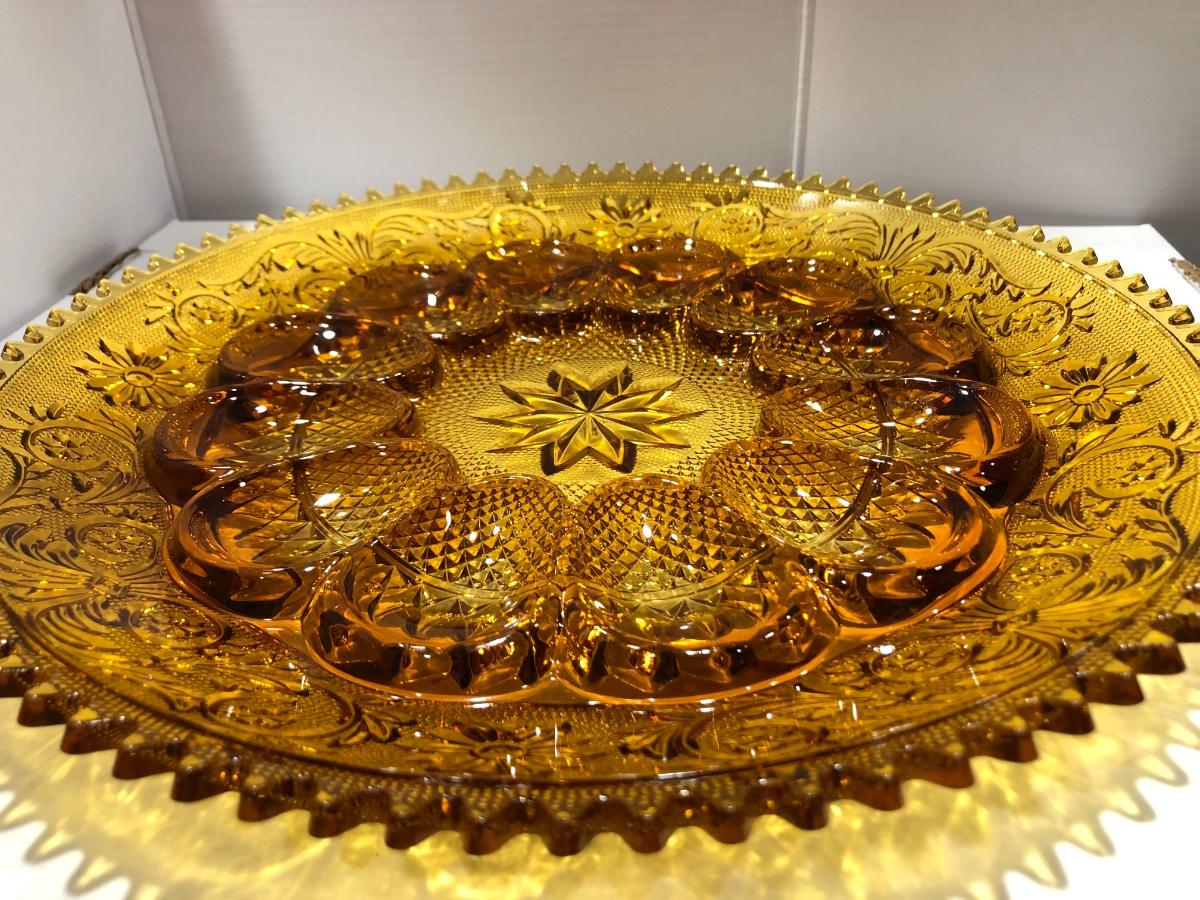 Beautiful Amber Tiara Indiana Glass Deviled Egg / Sandwich Dish