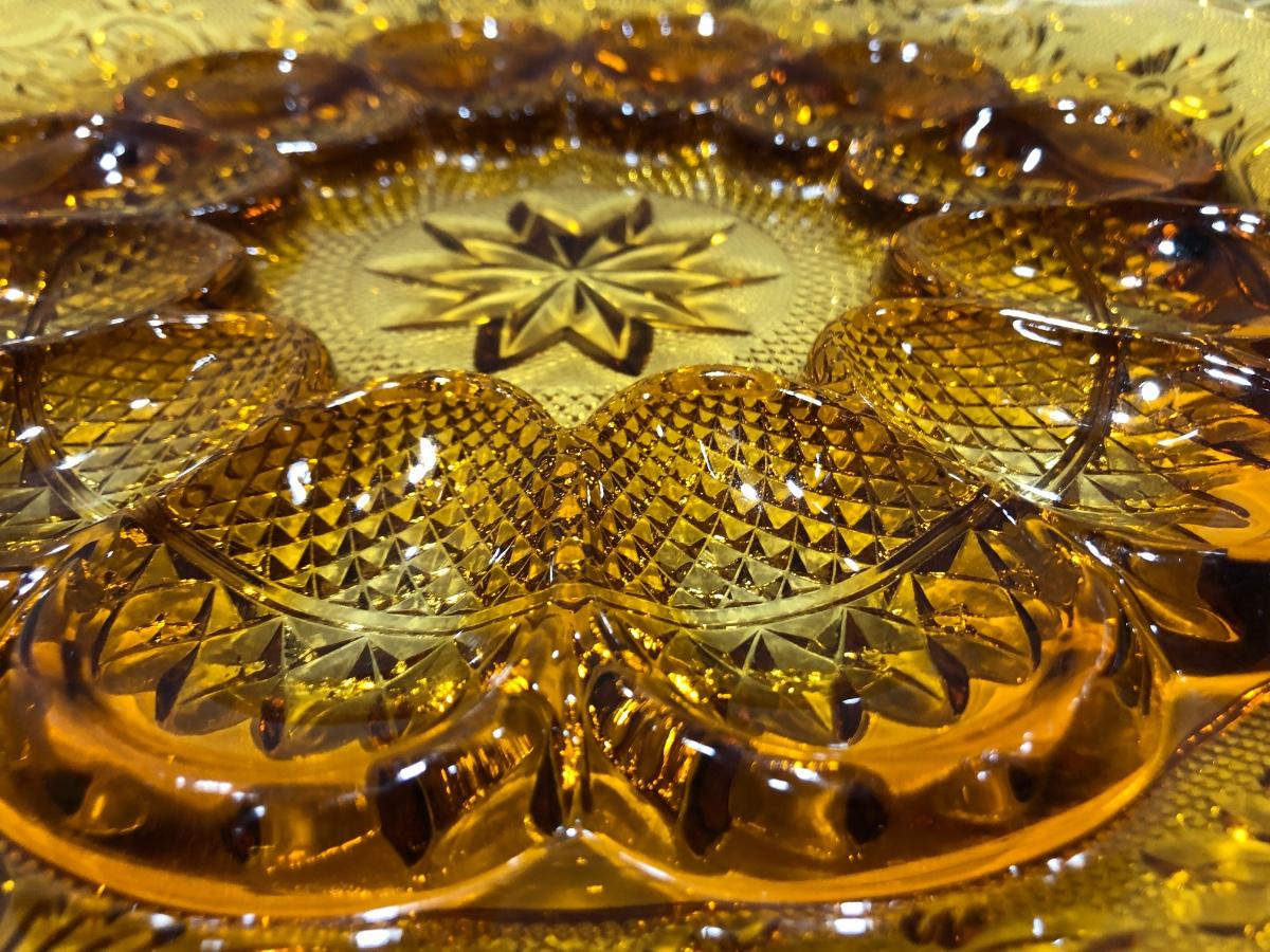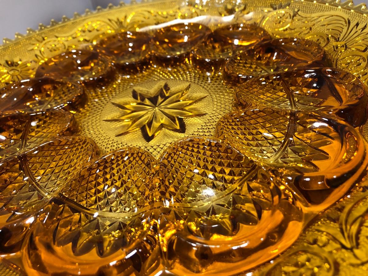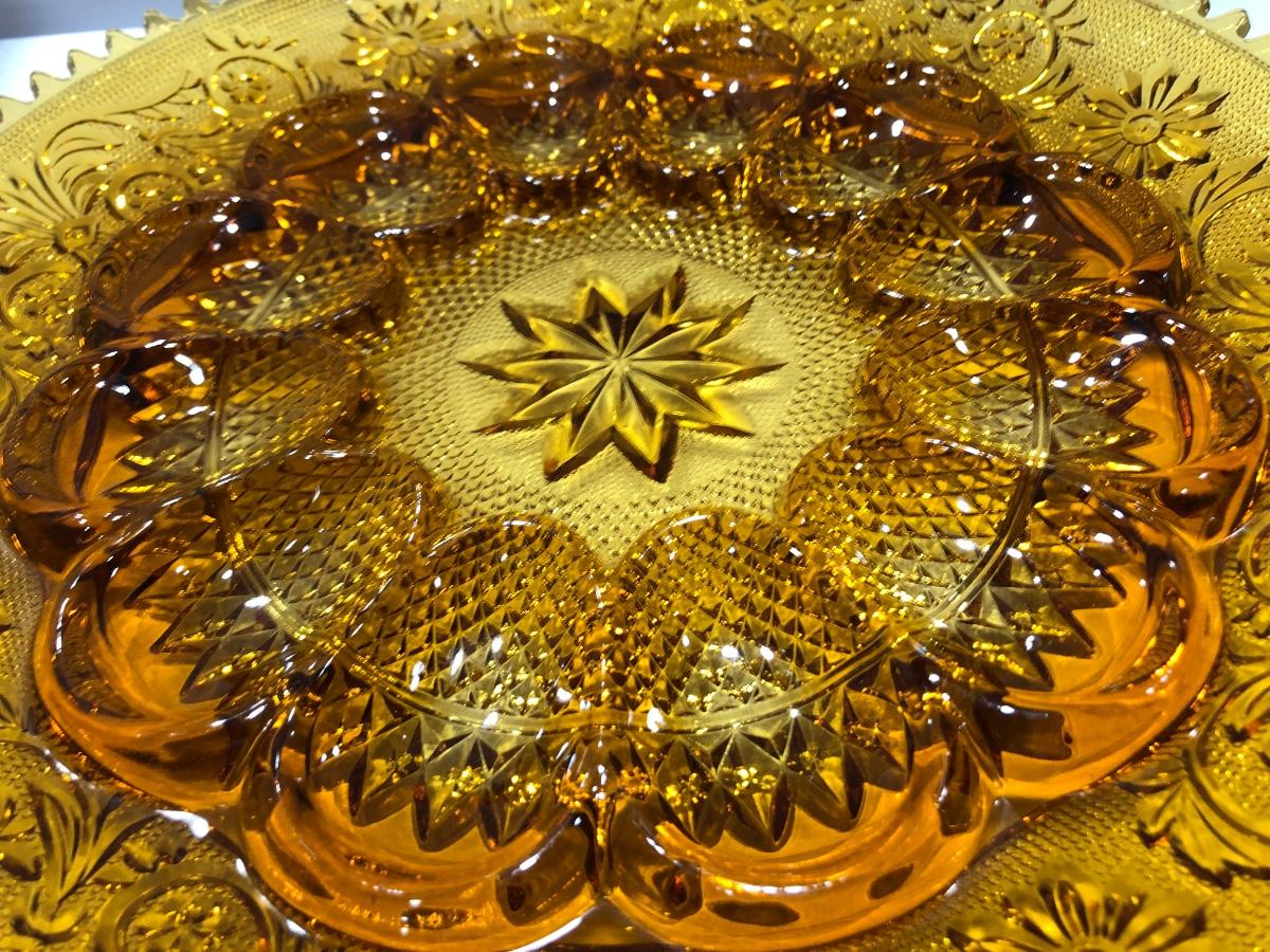 Beautiful Amber Tiara Indiana Glass Deviled Egg / Sandwich Dish