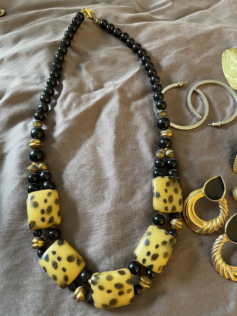 BEAUTIFUL ANIMAL PRINT BLACK BEADED NECKLACE