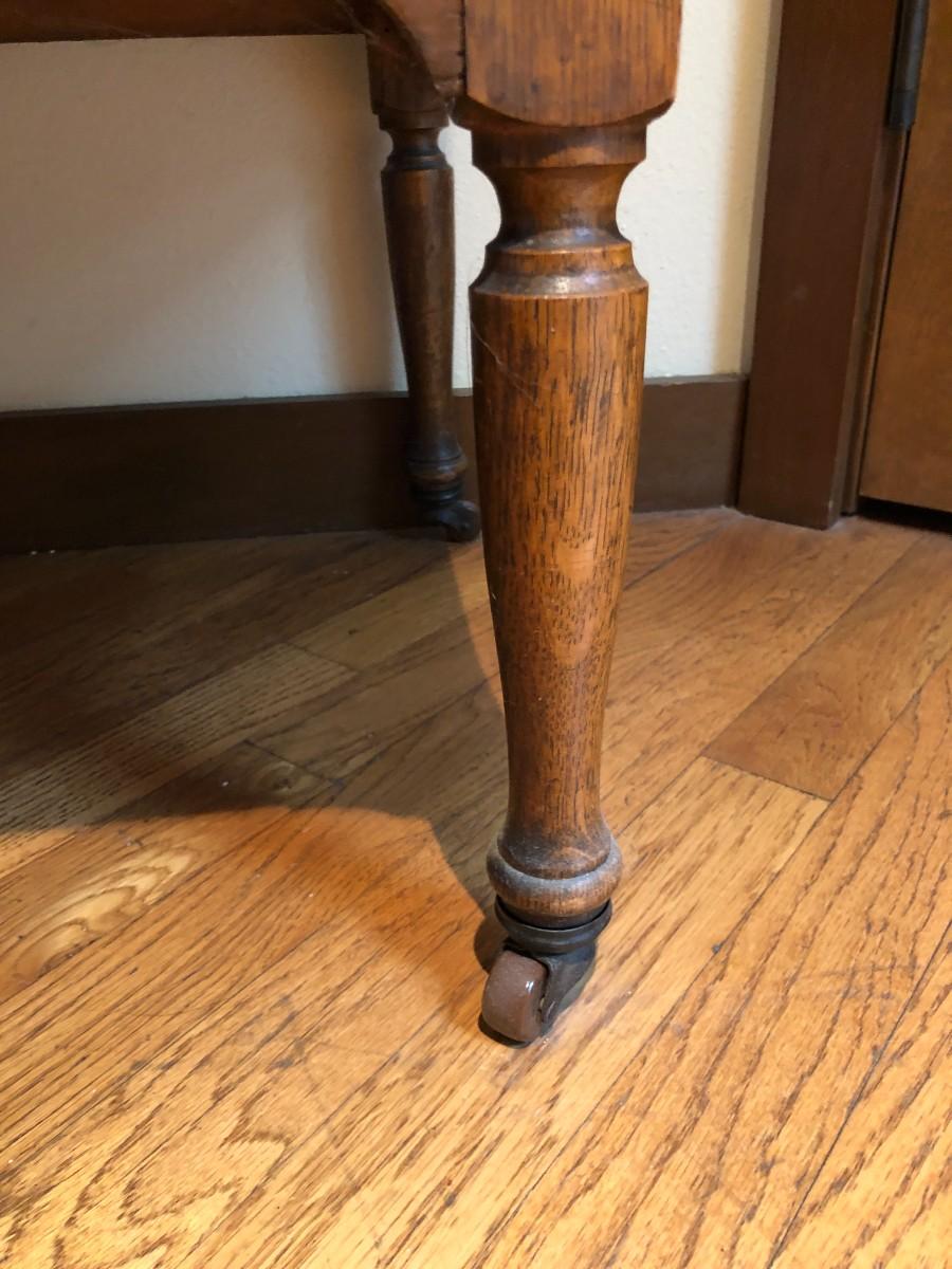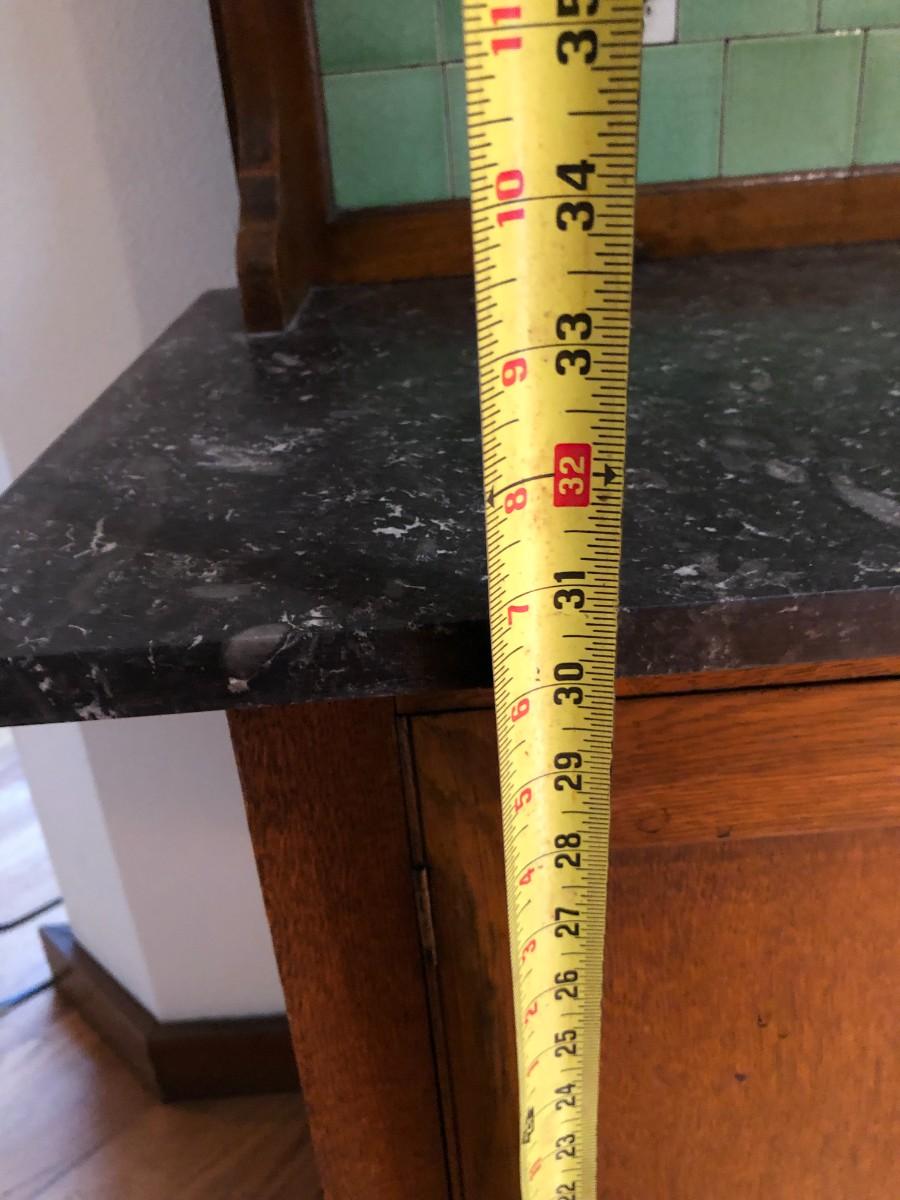 Beautiful Antique English Buffet Sideboard Table with Marble Top and Tile Back with Wheel Legs