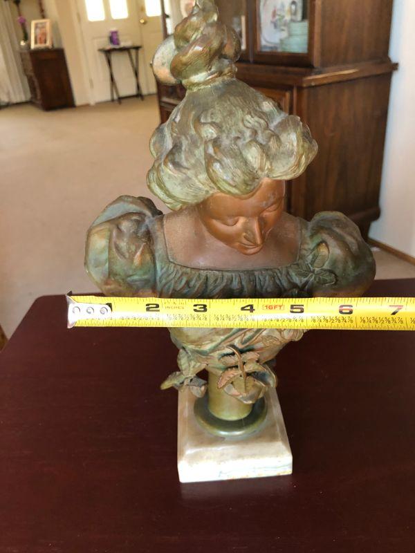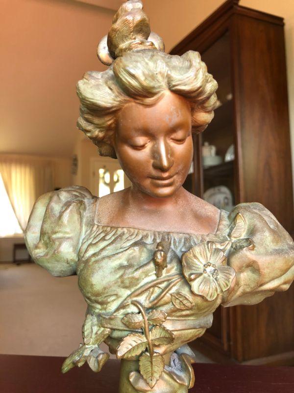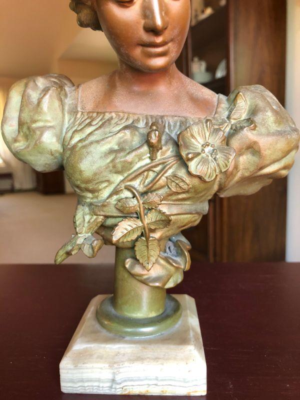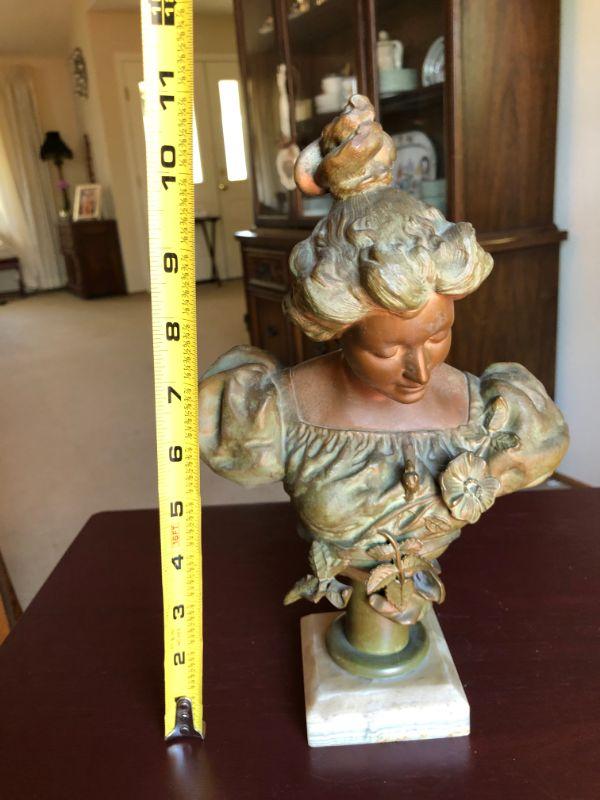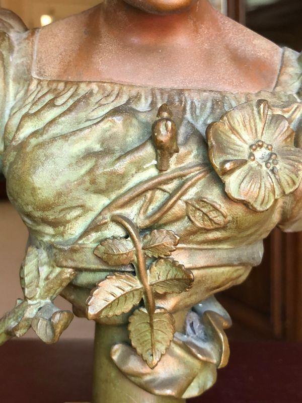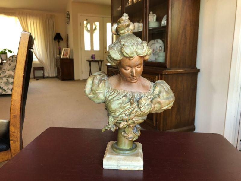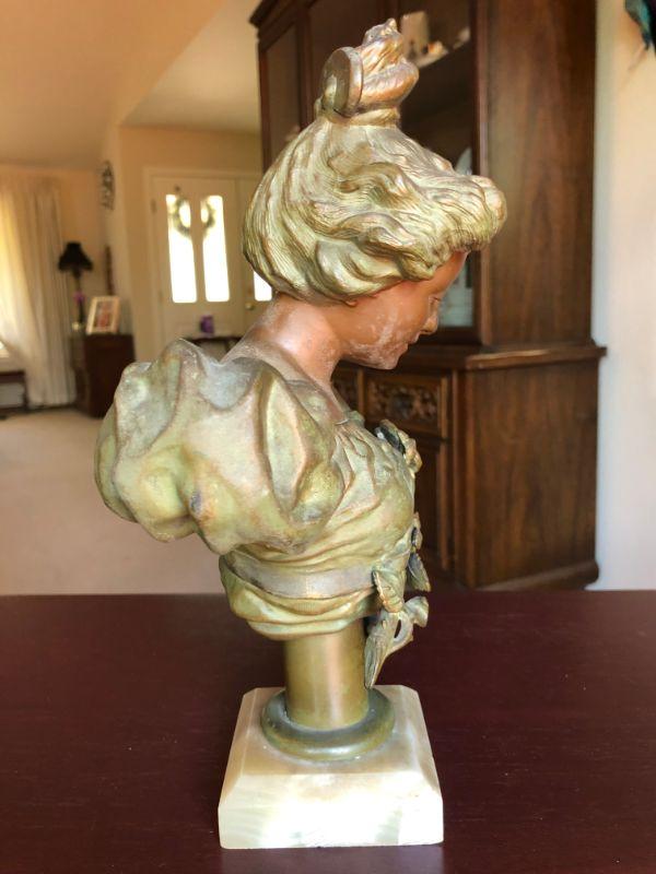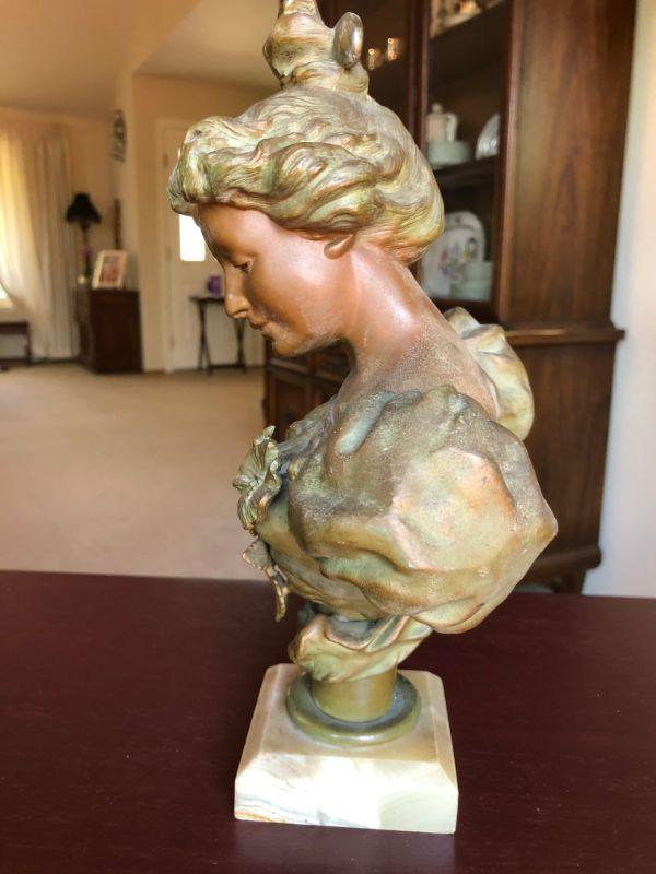 Beautiful Antique Bust of Woman in Bronze Mixed Metal on Marble Base