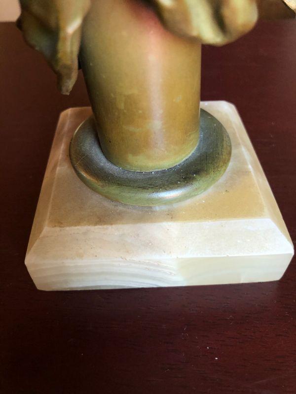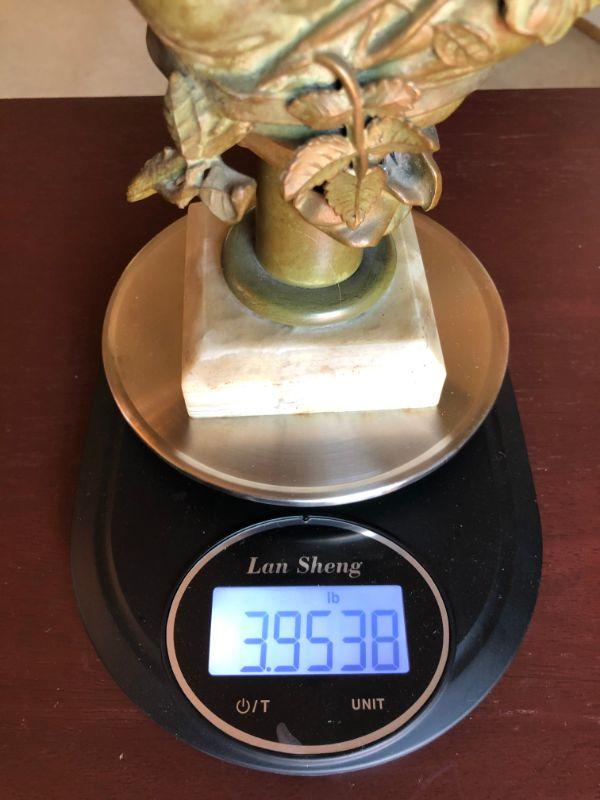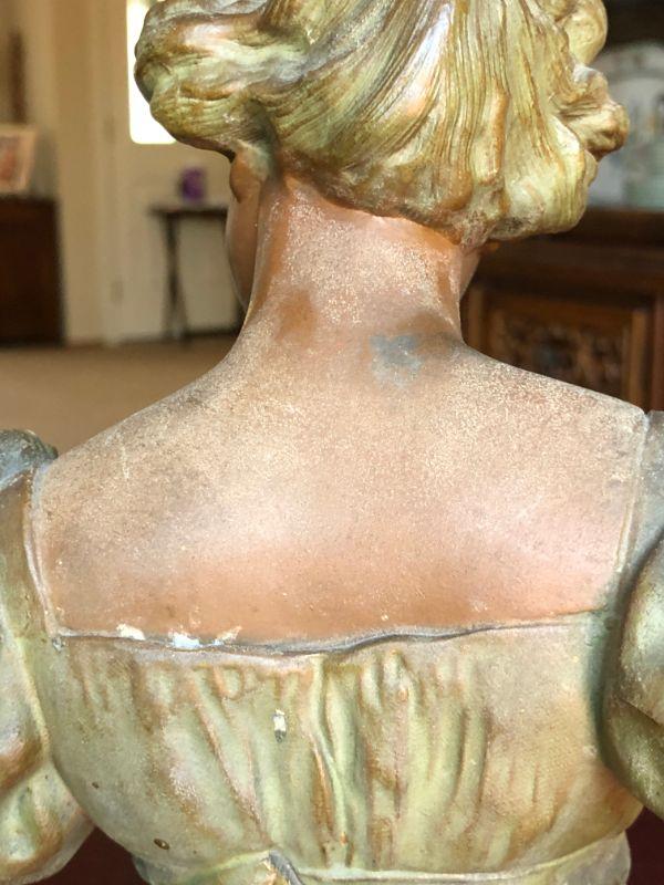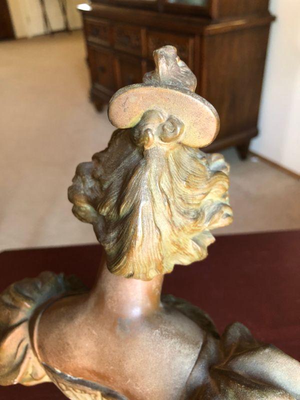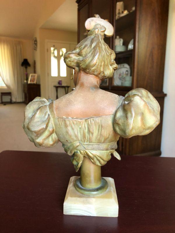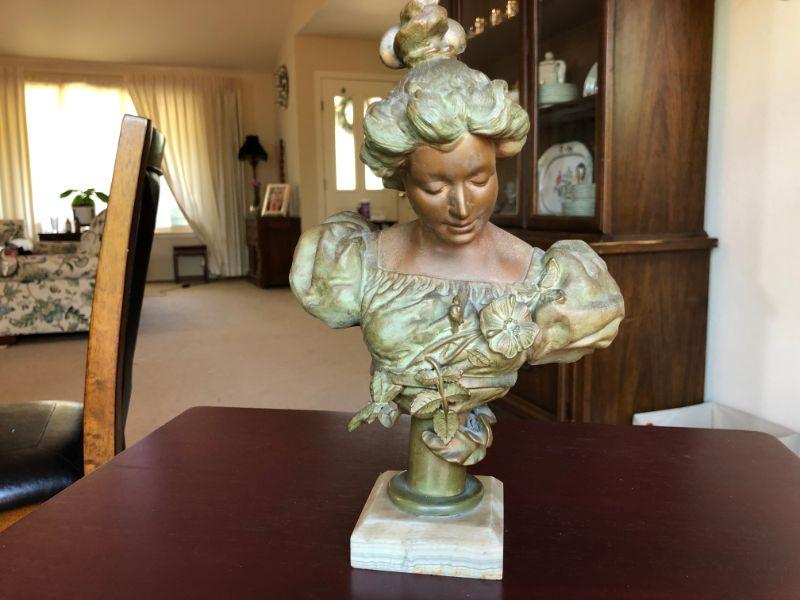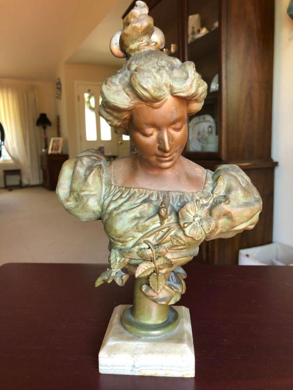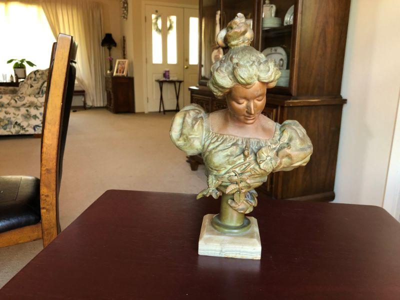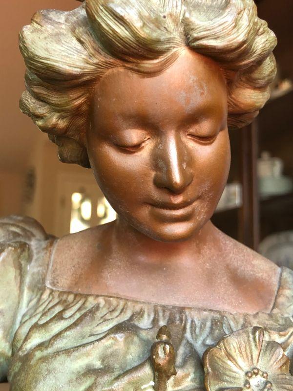 Beautiful Antique Bust of Woman in Bronze Mixed Metal on Marble Base