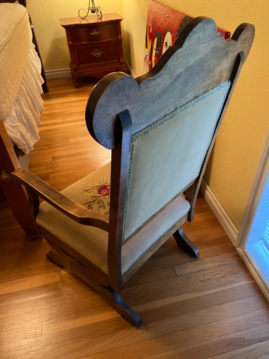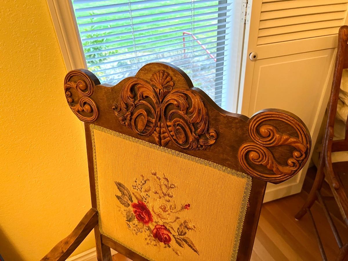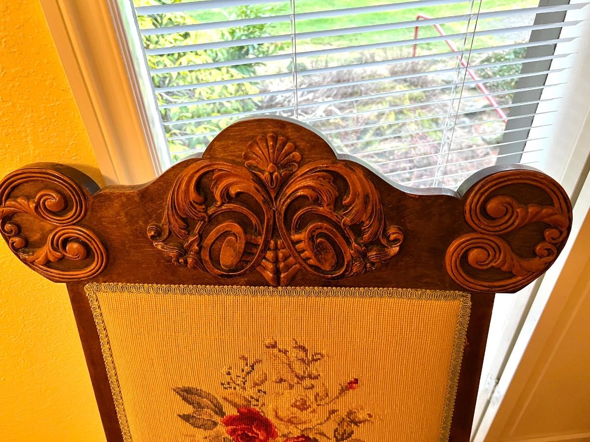 Beautiful Antique Carved Wood and Embroidered Armchair