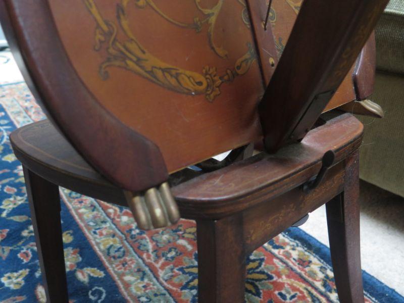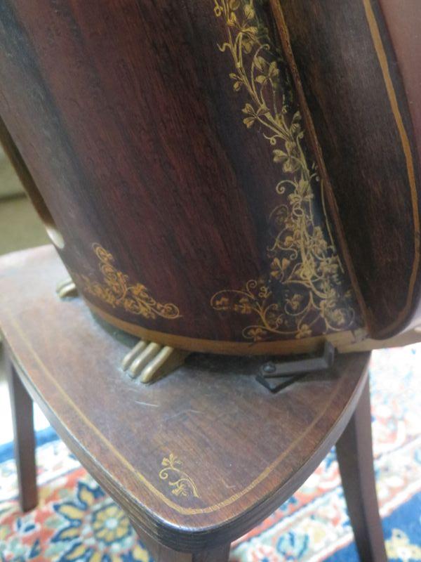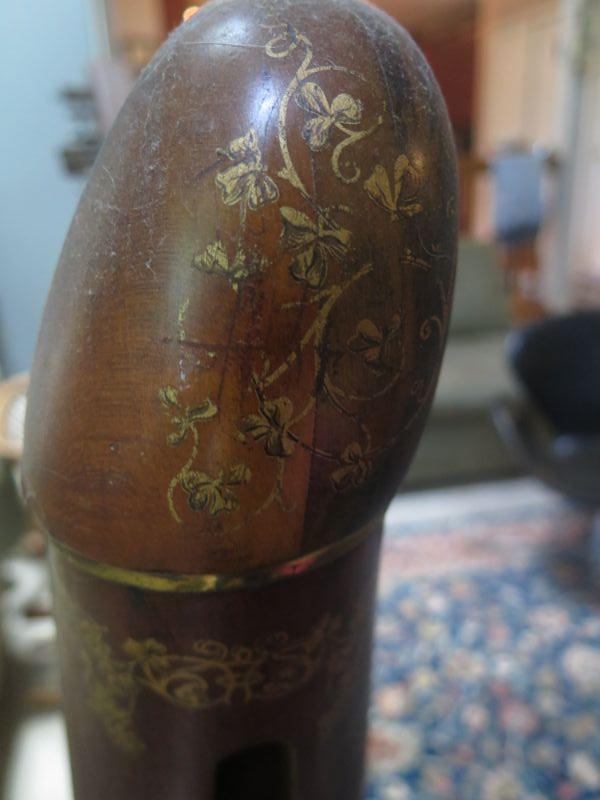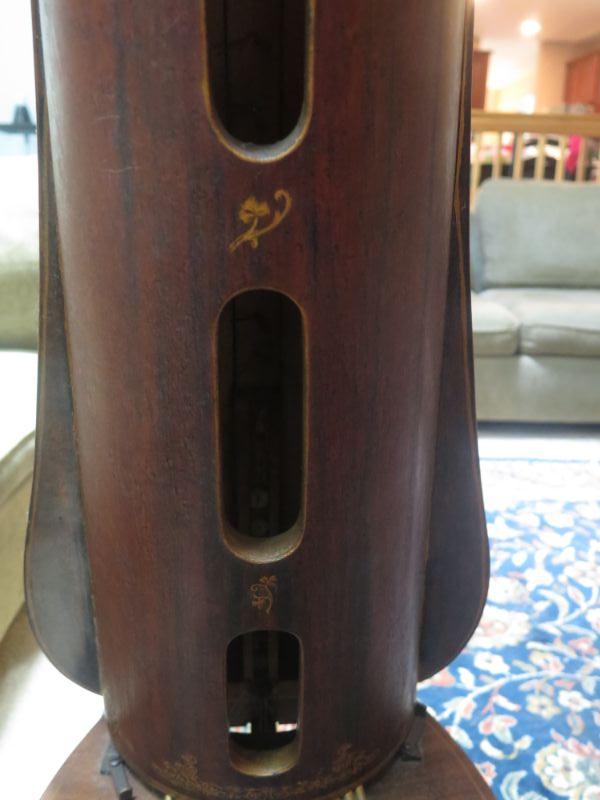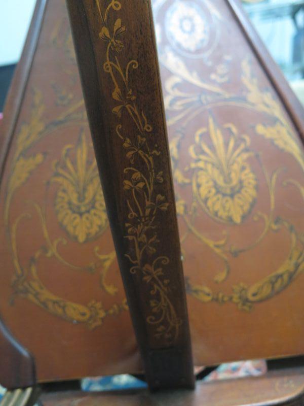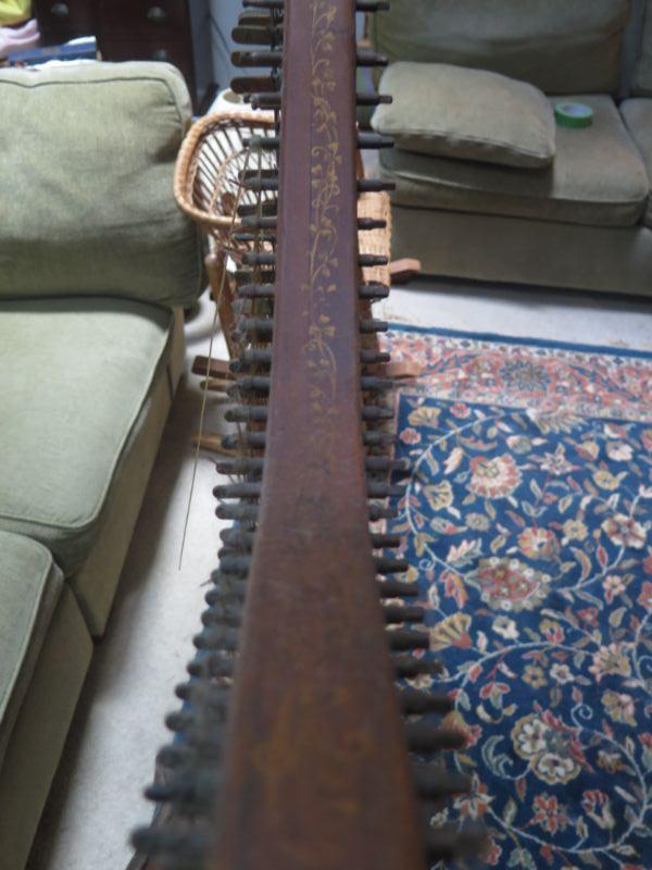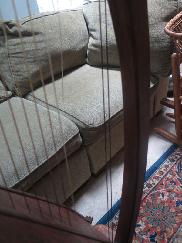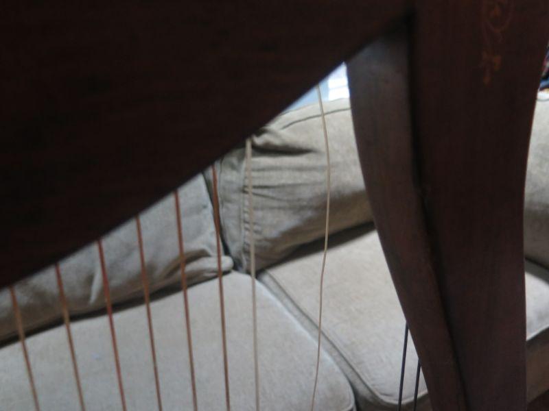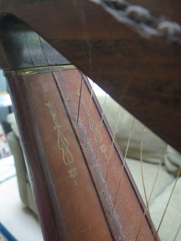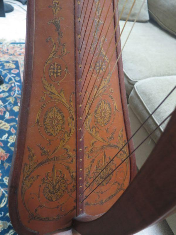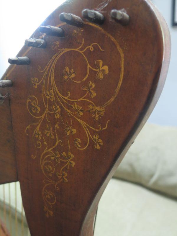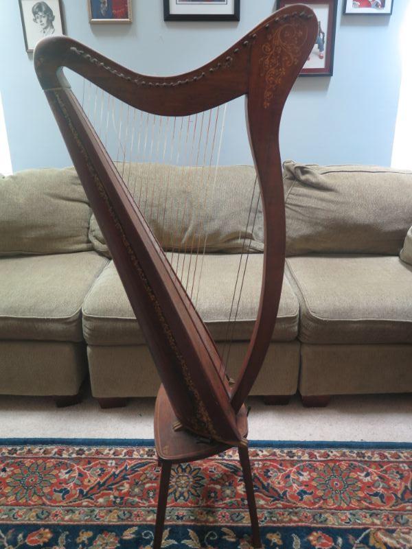 This beautiful hand painted antique Clark Irish harp comes with a detachable stand. Stands 51" high with stand. Photograph is deceiving, this is not a full size harp, It is just over 4 feet tall with the stand. Needs to be restrung and a good cleaning. **Please read Terms and Conditions before placing a bid. Pick up is Sunday, September 1, 2019 from 10am to 4pm in Williamstown. All sales are final. All sales are as is, where is. Please review all photos. Any props included in photos are not included in listing. All measurements are approximate. From home with cats.