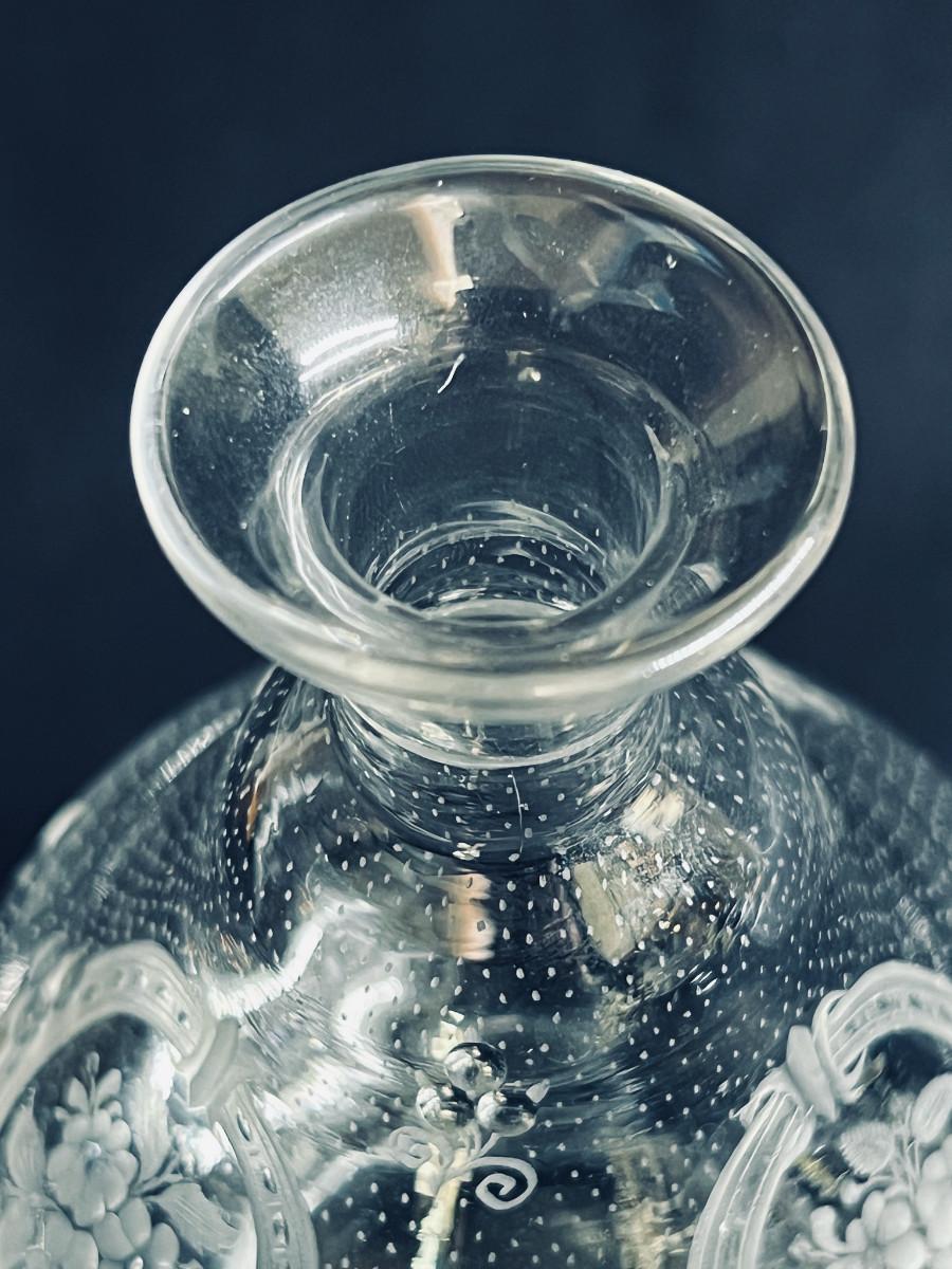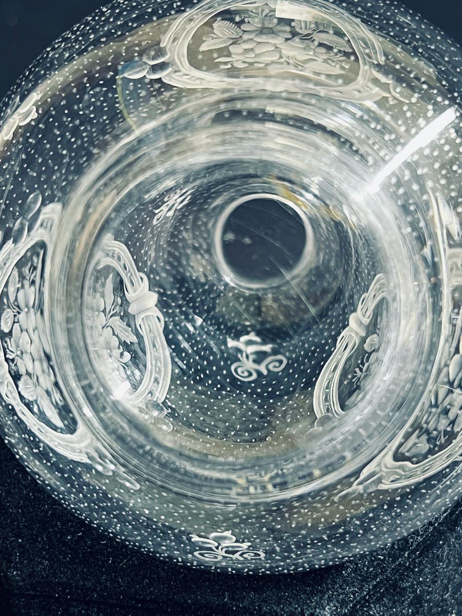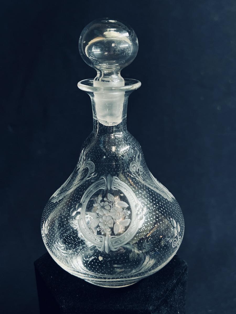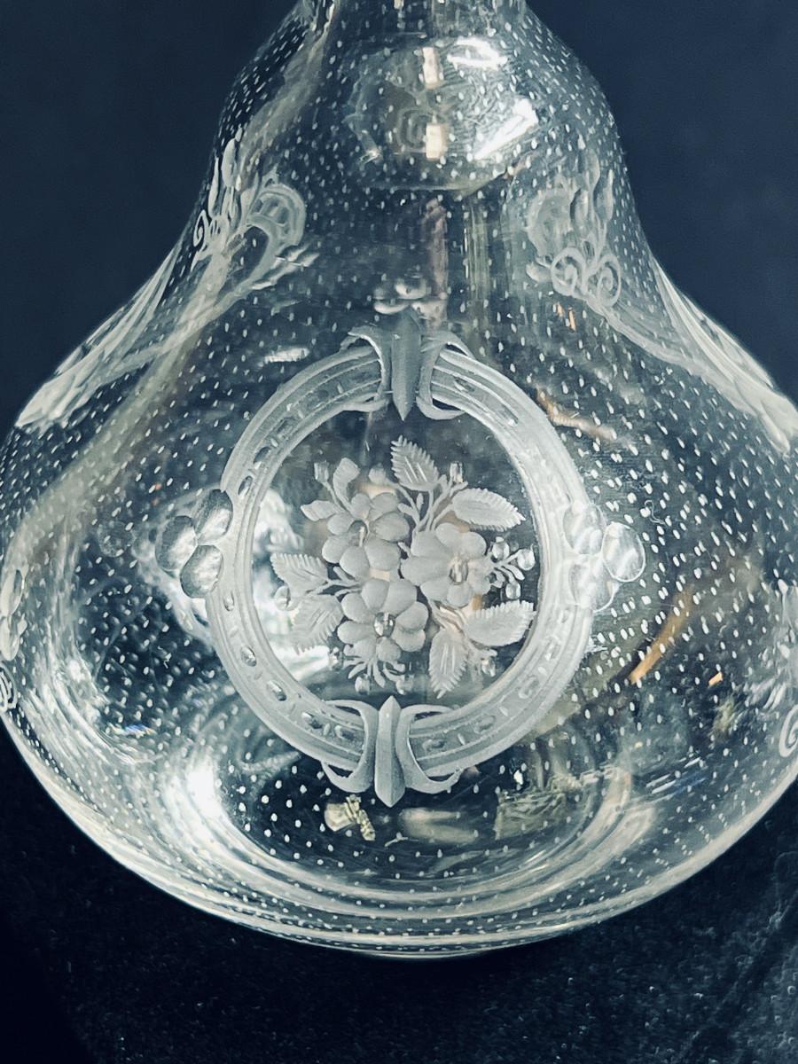 Beautiful Antique Etched and Cut Glass Perfume Bottle Blown Stopper