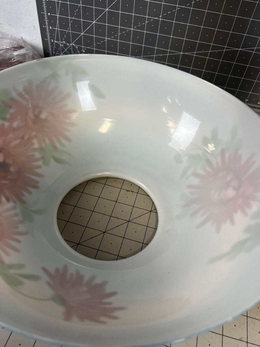 Aladdin, Hand Painted Shade! Appears to be in Working Condition. Hand Painted Shade. Mauve and Light Blue Glass in Good Condition. The Real Deal - Pretty!