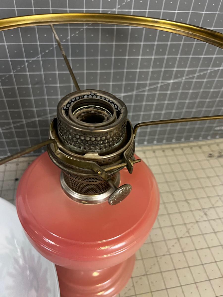 BEAUTIFUL Antique Glass Kerosene Lamp Aladdin, Hand Painted Shade!