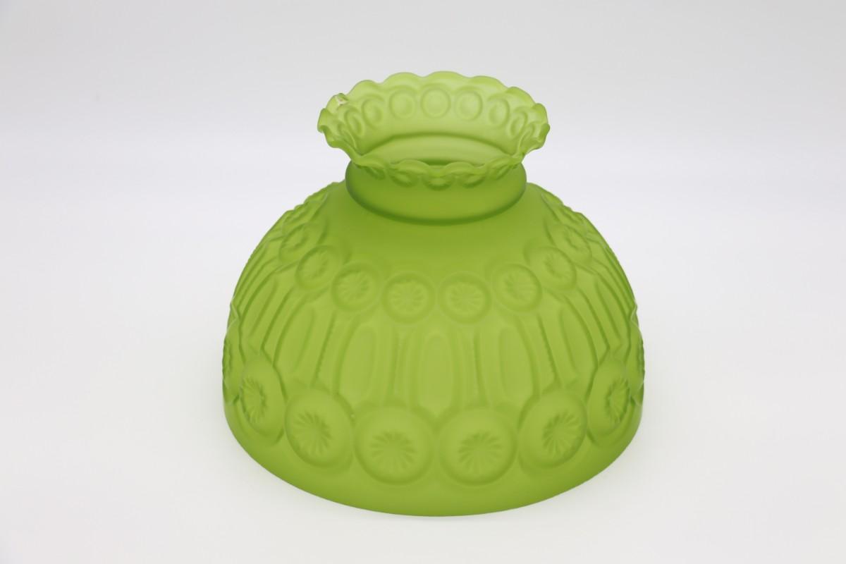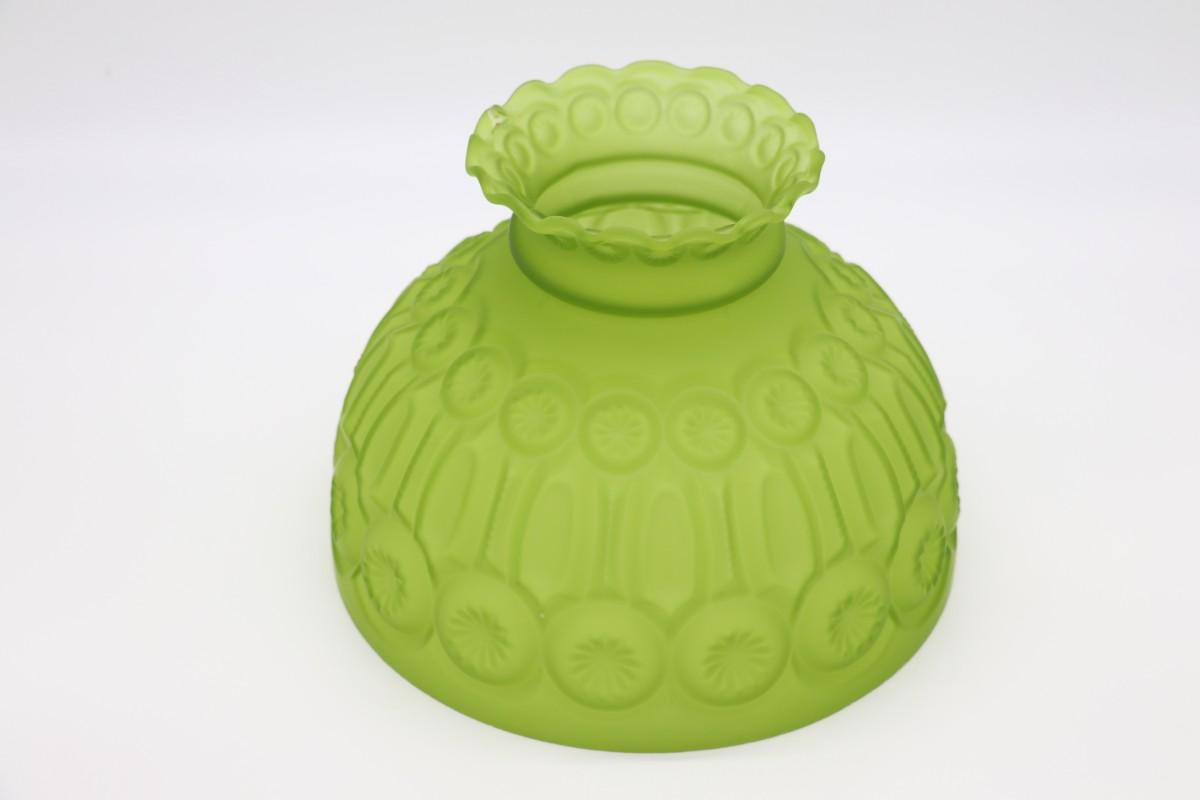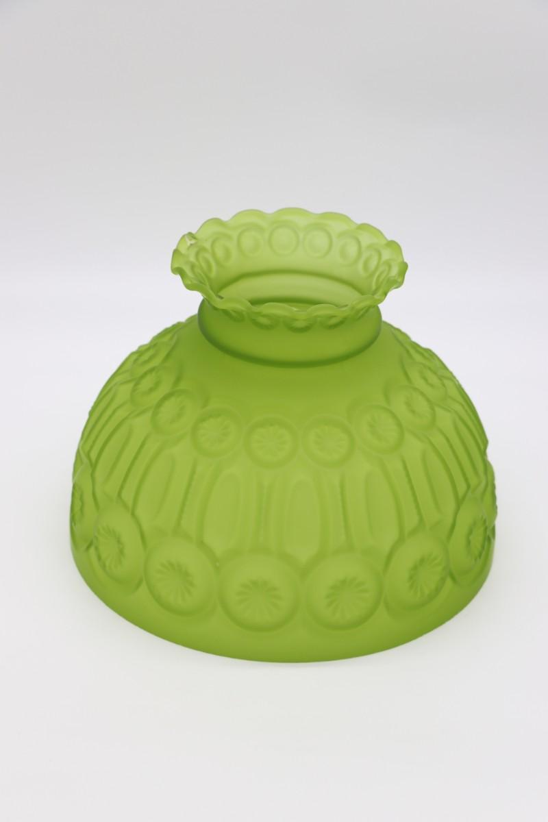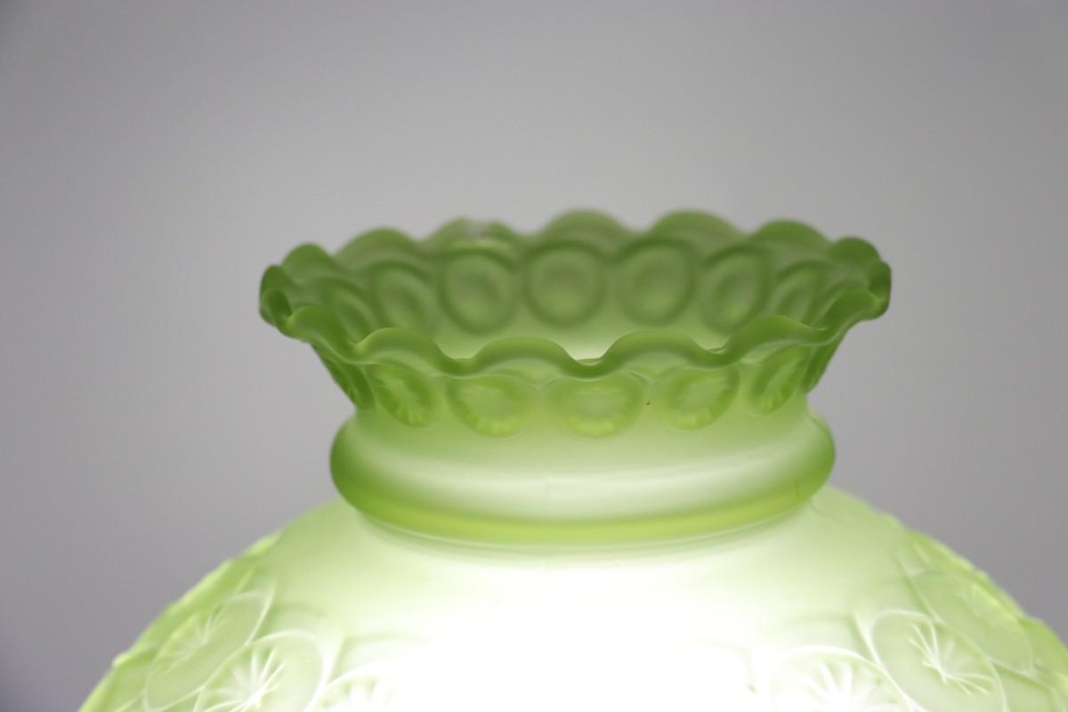 Beautiful Antique Green Glass Kerosene Shade. 10 inch base. From the estate of an antique store owner and lamp enthusiast. Condition as shown.